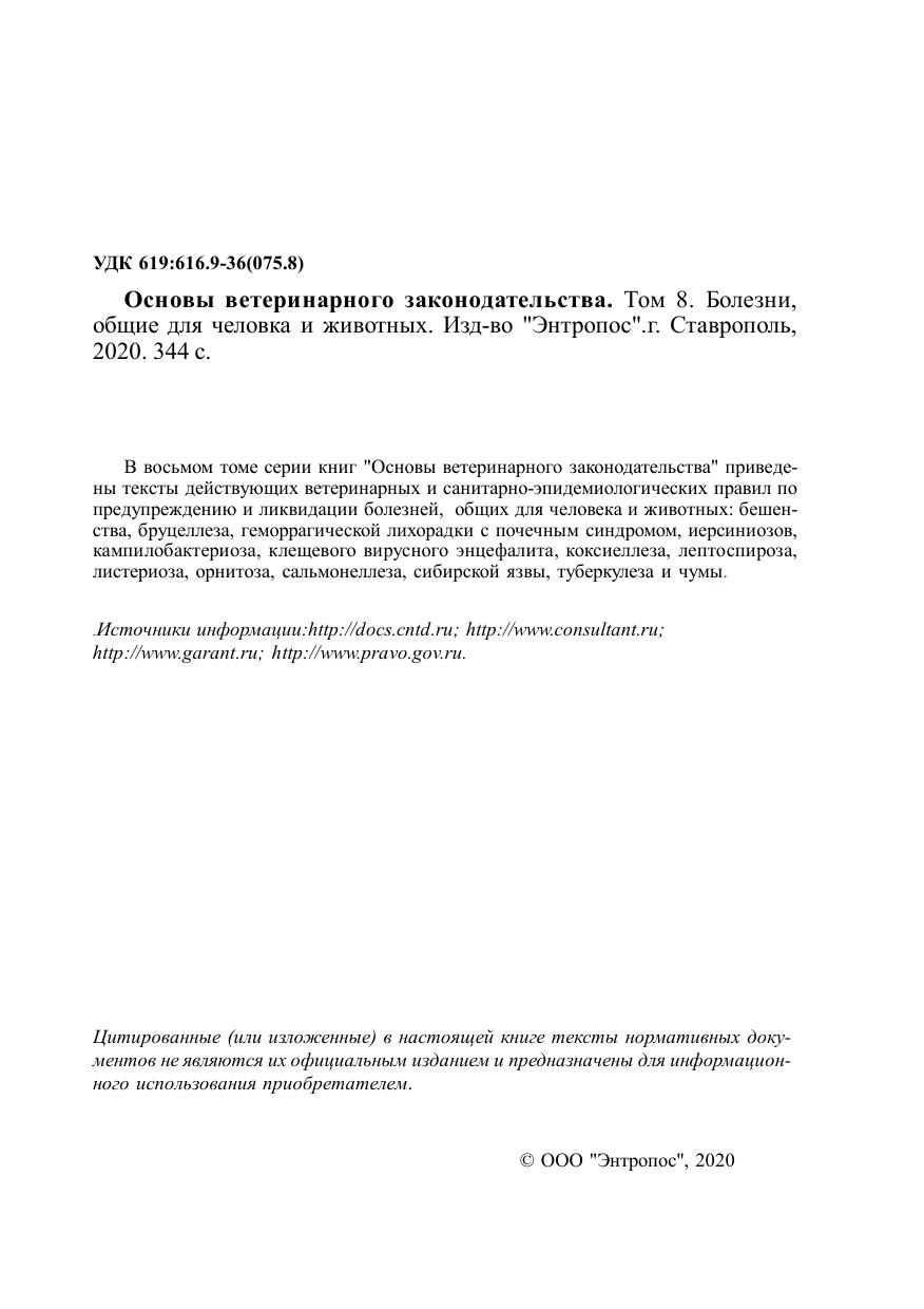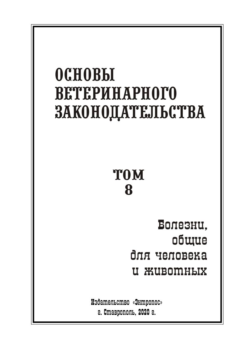 Основы ветеринарного законодательства. Том 8. Болезни, общие для человека и животных