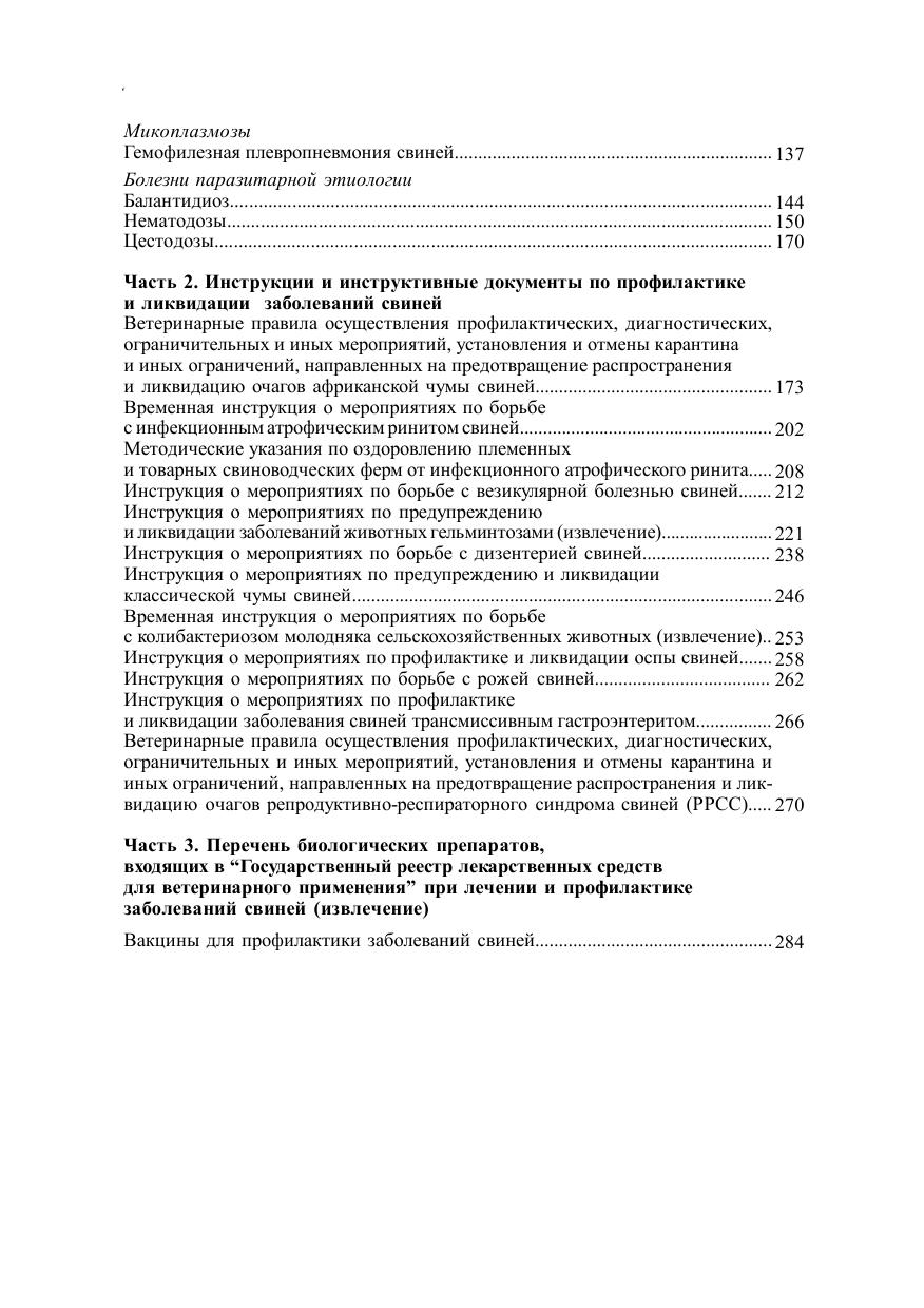 В книгу также включены ветеринарные правила содержания свиней, определения зоосанитарного статуса свиноводческих хозяйств и перечень биологических и других лекарственных препаратов, входящих в "Государственный реестр лекарственных средств для ветеринарного применения" для лечения и профилактики заболеваний свиней.