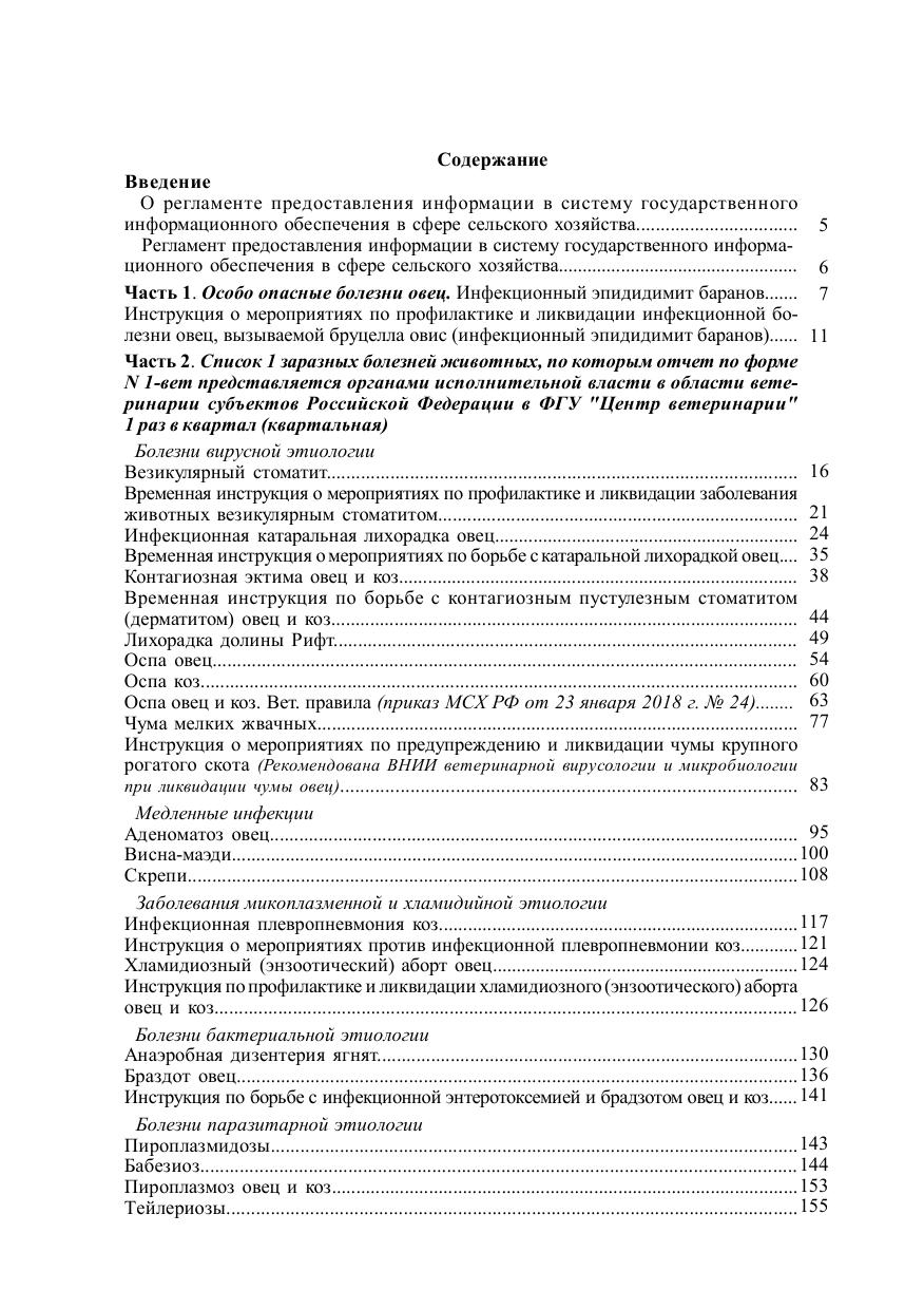 В книге приведено описание перечисленных заболеваний, а также других заболеваний мелкого рогатого скота, подлежащих включению в отчеты по форме N 1-вет: чумы мелких жвачных, лихорадки долины Рифт, медленных инфекций, дизентерии, злокачественного отека, инфекционного мастита, клещевого паралича.