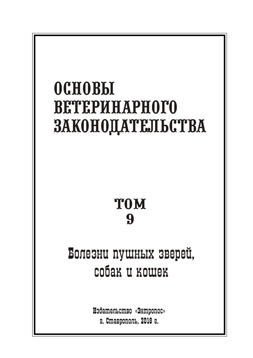 Основы ветеринарного законодательства. Том 9. Болезни пушных зверей, собак и кошек
