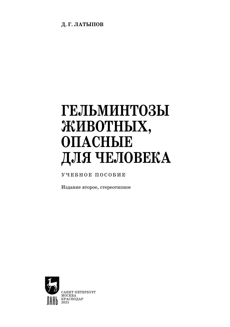 В учебном пособии подробно описаны наиболее распространенные в Российской Федерации и зарубежных странах гельминтозы животных, рыб, ракообразных и насекомых, опасные для человека. Сведения пособия изложены по общепринятой схеме, что позволяет специалистам более оперативно использовать их при диагностике, лечении и профилактике конкретного гельминтозного заболевания животного или человека. Учебное пособие будет полезно для широкого круга читателей, в том числе для студентов ветеринарных и медицинских колледжей, специалистов различного профиля: биологов, паразитологов, ветеринарных врачей и медицинских врачей общей практики.