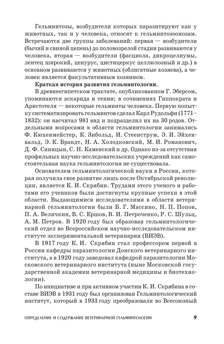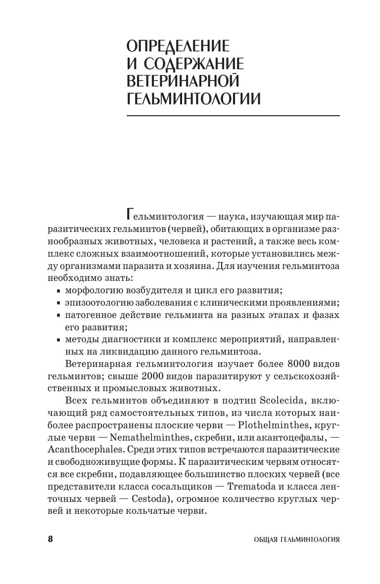 Настоящее учебное пособие включает материалы по общей и частной ветеринарной гельминтологии. В разделе «Общая гельминтология» изложены определение, содержание, краткая история развития ветеринарной гельминтологии, локализация гельминтов, патогенез, иммунитет при гельминтозах, а также их диагностика. В разделе «Частная гельминтология» рассматриваются трематодозы, цестодозы, нематодозы и акантоцефалезы. Заболевание описывается по общепринятой в паразитологии схеме: название возбудителя, морфология, биология, эпизоотологические данные, патогенез, симптомы, патологоанатомические изменения, диагностика, лечение и профилактика.