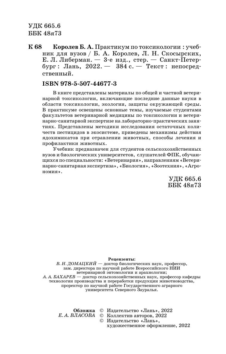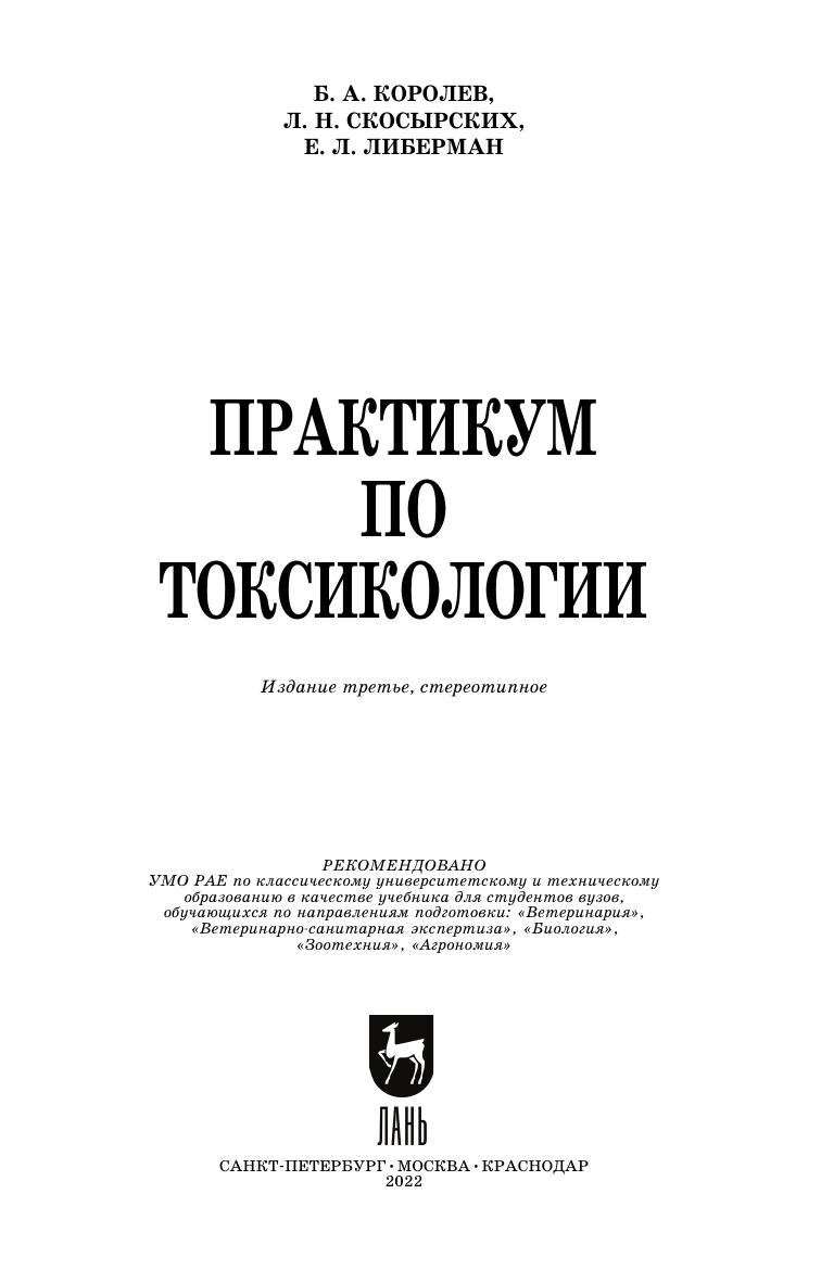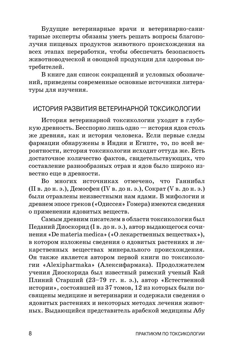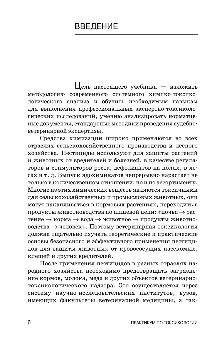 В книге представлены материалы по общей и частной ветеринарной токсикологии, включающие последние данные науки в области токсикологии, экологии, защиты окружающей среды. В практикуме освещены основные темы, изучаемые студентами факультетов ветеринарной медицины по токсикологии и ветеринарно-санитарной экспертизе на лабораторно-практических занятиях. Представлены методики исследования остаточных количеств пестицидов в экосистеме, приведены механизмы действия ядохимикатов при отравлении животных, способы лечения и профилактики животных.