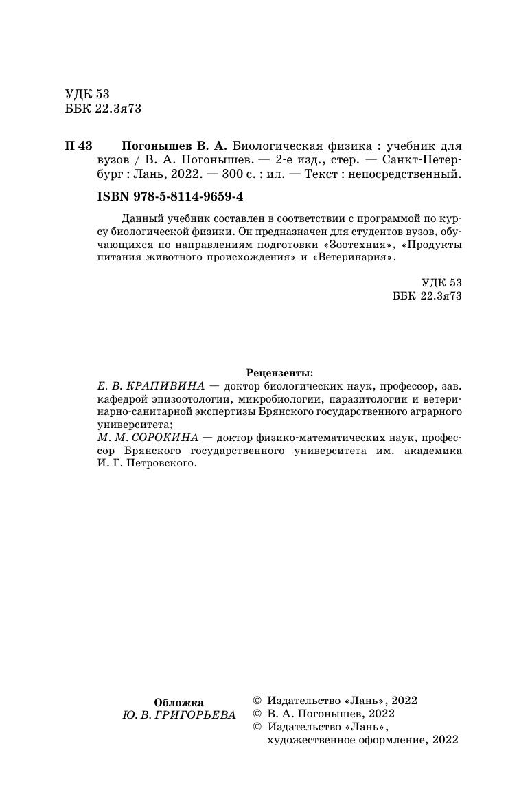 Данный учебник составлен в соответствии с программой по курсу биологической физики. Он предназначен для студентов профилей «Зоотехния», «Продукты питания животного происхождения» и студентов специальности «Ветеринария».