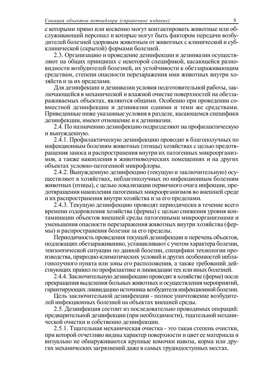 Санация (от лат. Sanatio – оздоровление, лечение) животноводческих помещений и окружающей среды достигается путем проведения комплекса мероприятий: дезинфекции, дератизации, дезодорации и дезинсекции. В этой книге приведены тексты законодательных актов, непосредственно касающихся организации проведения ветеринарной службой мероприятий по дезинфекции, дезинсекции, дезинвазии и дератизации. В книгу также включена информация о классических и современных аль- тернативных средствах и методах дезинфекции, дезинсекции, дезинвазии и дератизации с краткими инструкциями к препаратам и описаниями приборов. Приведены сведения о разрешенных на территории РФ антигельминтных препаратах, антисептиках и дезинсектантах для животных, включенных в Государственный реестр лекарственных средств для ветеринарного применения.
