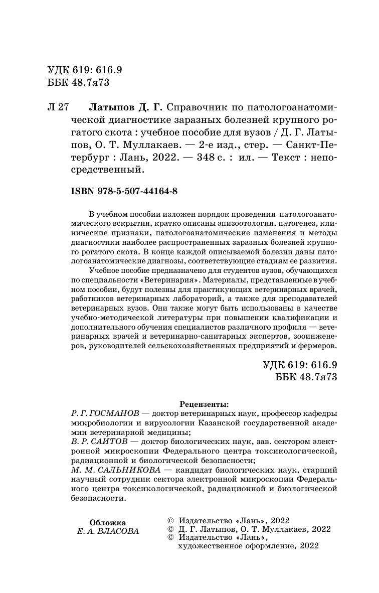 В учебном пособии изложен порядок проведения патологоанатомического вскрытия, кратко описаны эпизоотология, патогенез, клинические признаки, патологоанатомические изменения и методы диагностики наиболее распространенных заразных болезней крупного рогатого скота. В конце каждой описываемой болезни даны патологоанатомические диагнозы, соответствующие стадиям ее развития.