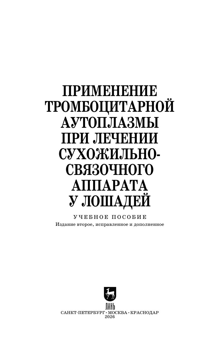 В пособии представлены краткая история возникновения, разработки и внедрения перспективной методики плазмолифтинга в ветеринарную практику, даны теоретические основы, показания и рекомендации для применения тромбоцитарной аутоплазмы при лечении лошадей с заболеваниями сухожильно-связочного аппарата, описаны методика, процедуры, лабораторно-техническое оборудование, результаты лечения, конкретные случаи. Пособие предназначено для практикующих ветеринарных врачей и студентов факультетов ветеринарной медицины, обучающихся по специальности «Ветеринария» (уровень специалитета), использующих в профессиональной и учебной деятельности методы решения задач с использованием современного оборудования, с учетом новых технологий и овладевающих профессиональной методологией для проведения исследований и интерпретации их результатов, в соответствии с общепрофессиональными компетенциями.