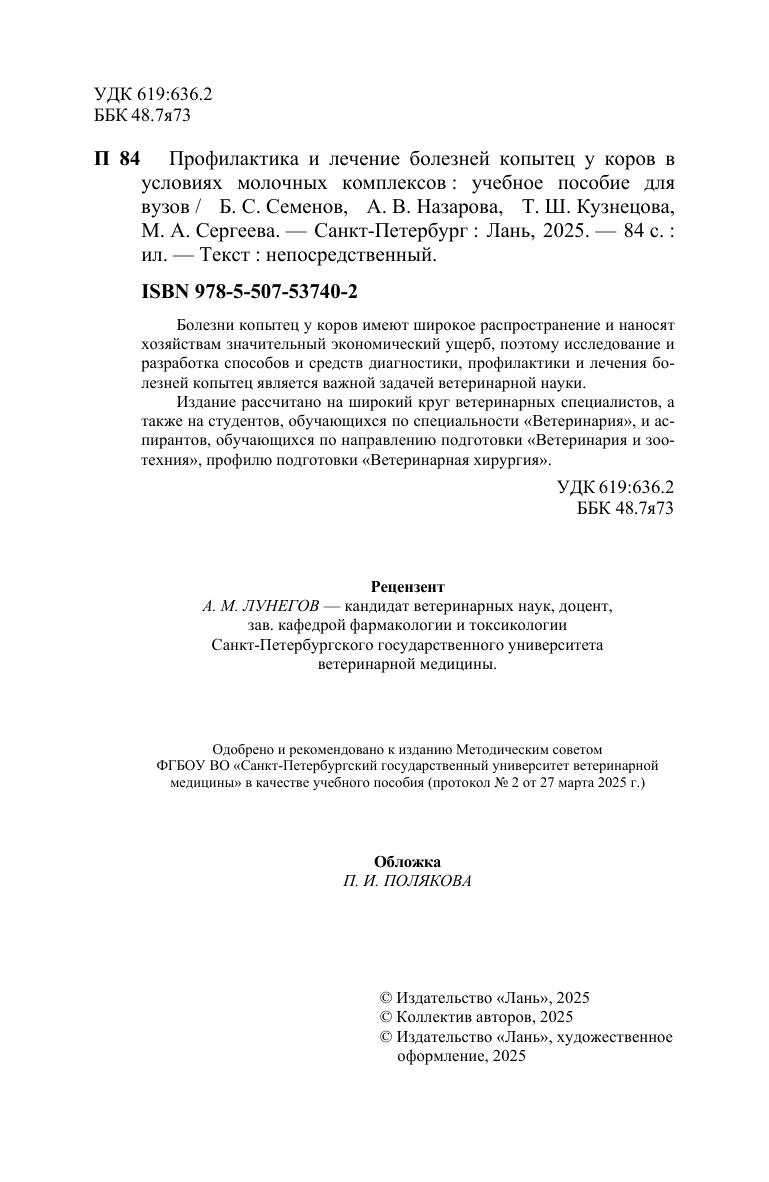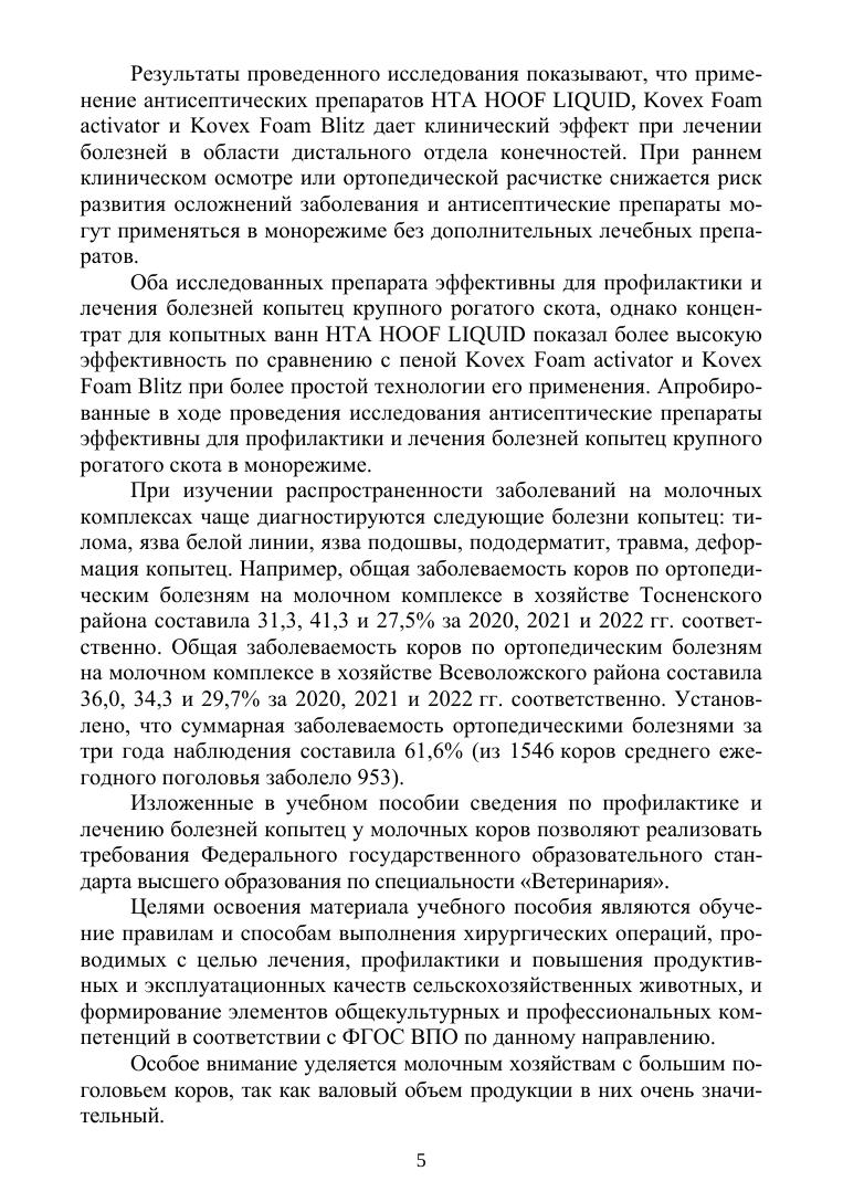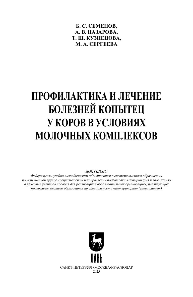 Болезни копытец у коров имеют широкое распространение и наносят хозяйствам значительный экономический ущерб, поэтому исследование и разработка способов и средств диагностики, профилактики и лечения болезней копытец является важной задачей ветеринарной науки. Издание рассчитано на широкий круг ветеринарных специалистов, а также на студентов, обучающихся по специальности «Ветеринария», и аспирантов, обучающихся по направлению подготовки «Ветеринария и зоотехния», профилю подготовки «Ветеринарная хирургия».