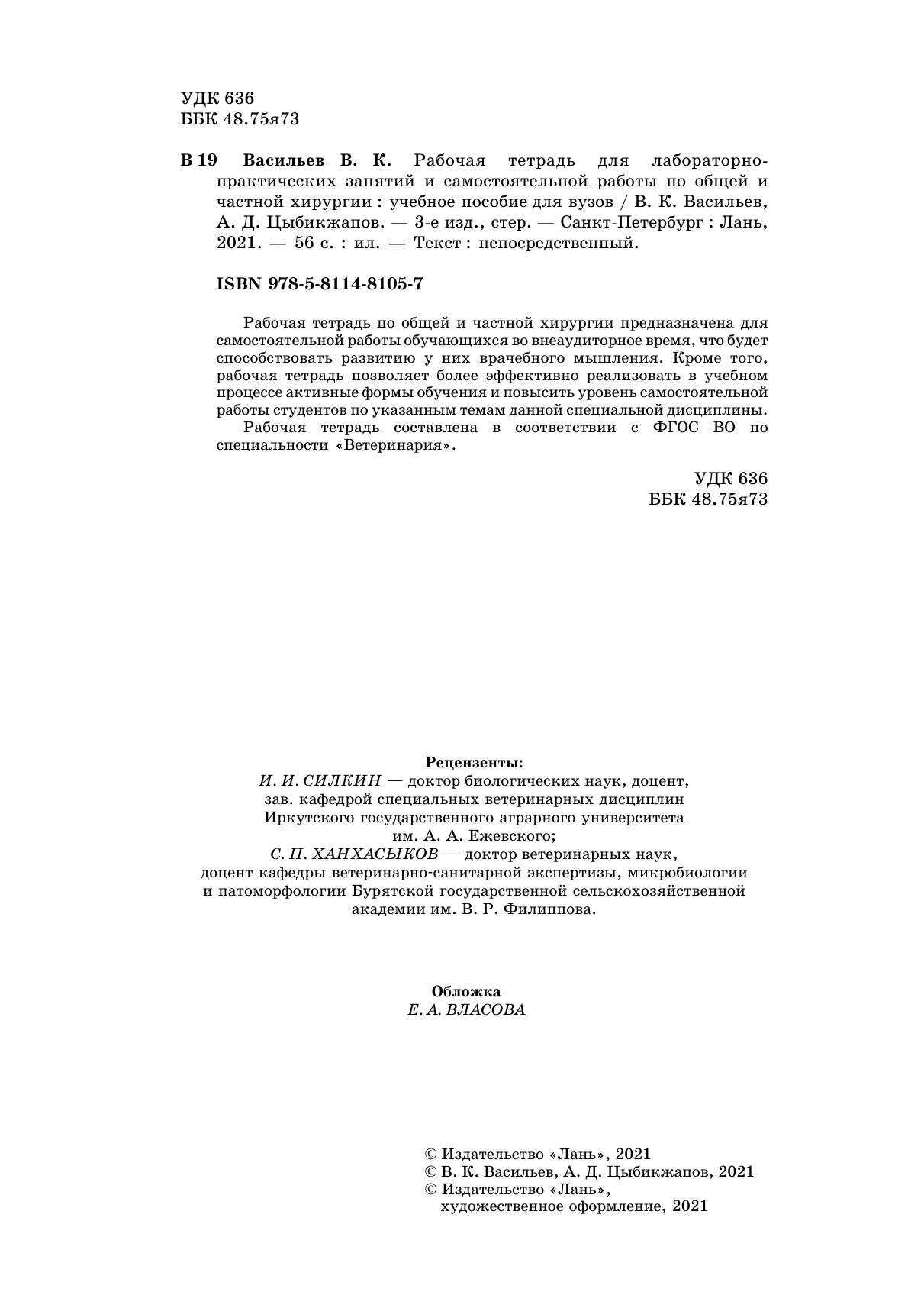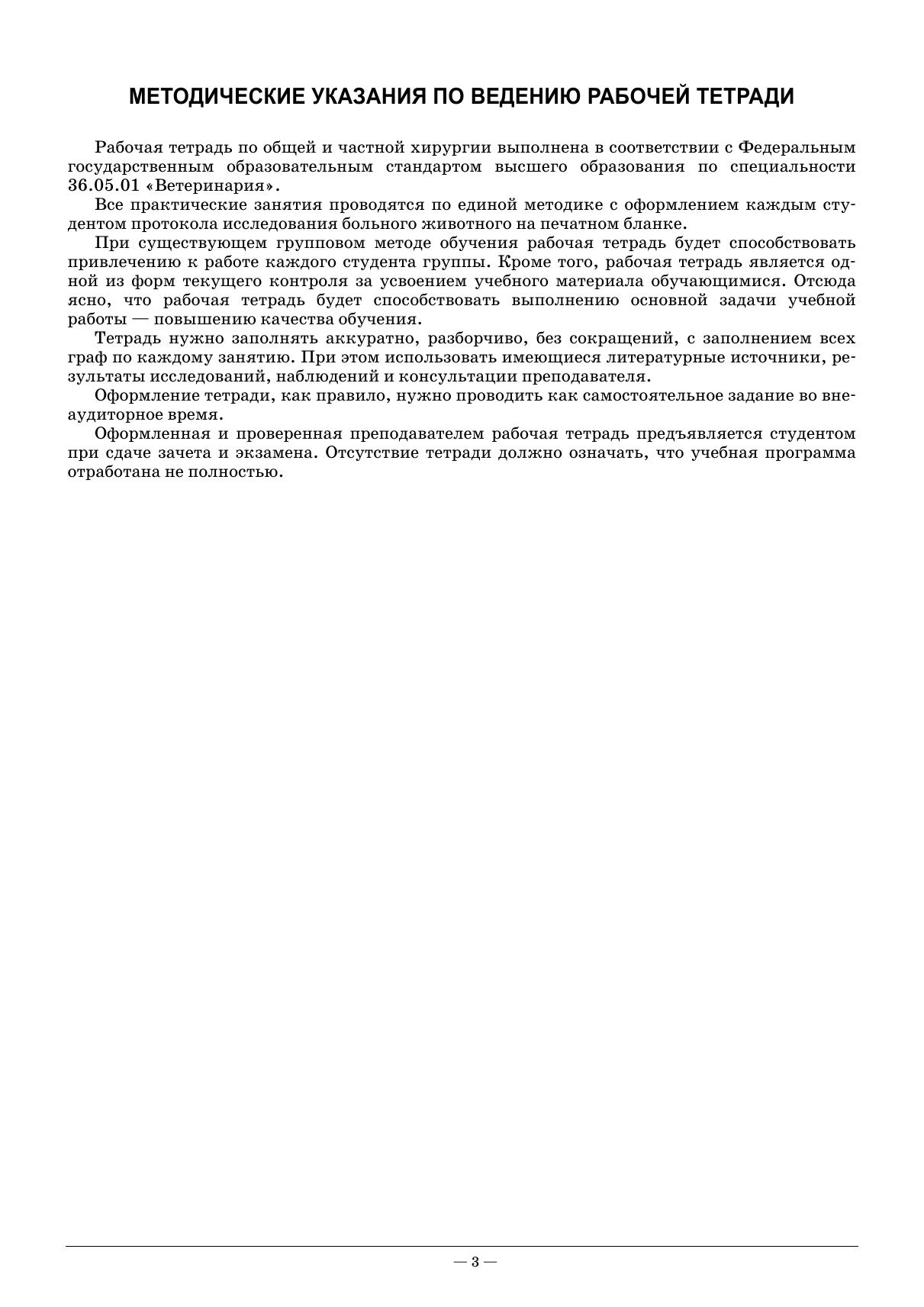 Рабочая тетрадь по общей и частной хирургии предназначена для самостоятельной работы обучающихся во внеаудиторное время, что будет способствовать развитию у них врачебного мышления. Кроме того, рабочая тетрадь позволяет более эффективно реализовывать в учебном процессе активные формы обучения и повысить уровень самостоятельной работы студентов по указанным темам данной специальной дисциплины.