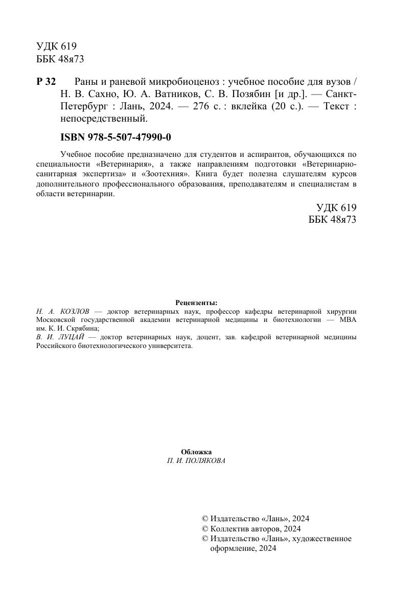 Учебное пособие предназначено для студентов и аспирантов, обучающихся по специальности «Ветеринария», а также направлениям подготовки «Ветеринарно-санитарная экспертиза» и «Зоотехния». Книга будет полезна слушателям курсов дополнительного профессионального образования, преподавателям и специалистам в области ветеринарии.