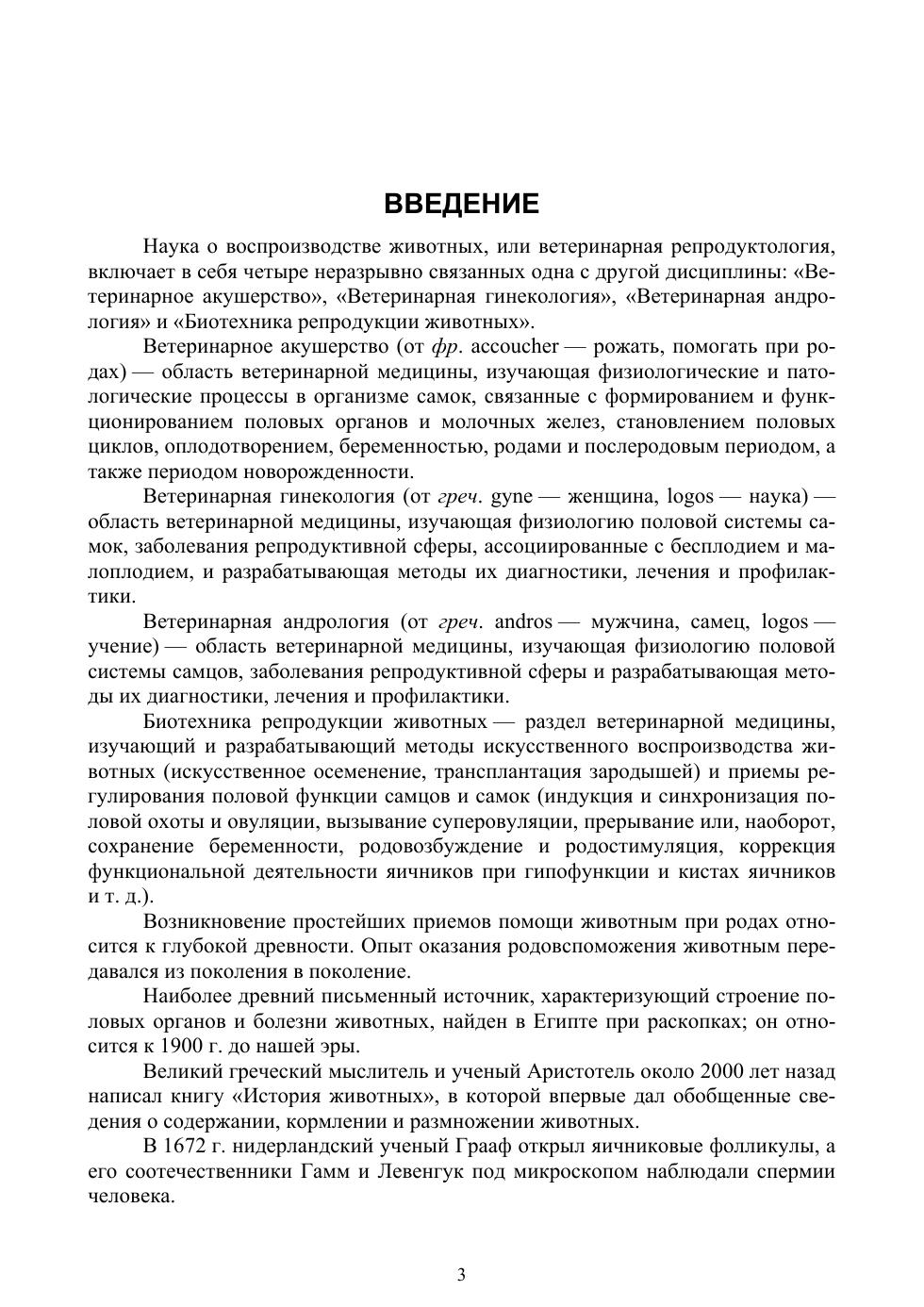 Представлены разделы анатомии и физиологии органов размножения, современные технологии и способы искусственного осеменения животных, физиология и патология беременности, родов и послеродового периода. Изложены вопросы иммунологических взаимоотношений при оплодотворении и беременности, взаимосвязи нервной, эндокринной и иммунной систем в регуляции гомеостаза. Даны сведения по акушерской терапии, болезням молочной железы, гинекологии и андрологии домашних животных. Внесены изменения и дополнения практически во все разделы учебника. При этом отдельные его разделы и подразделы (экстракорпоральное оплодотворение, вспомогательные репродуктивные технологии, ультразвуковая диагностика беременности и др.) изложены впервые. Для студентов вузов, обучающихся по специальностям «Ветеринария» и направлению подготовки «Зоотехния».
