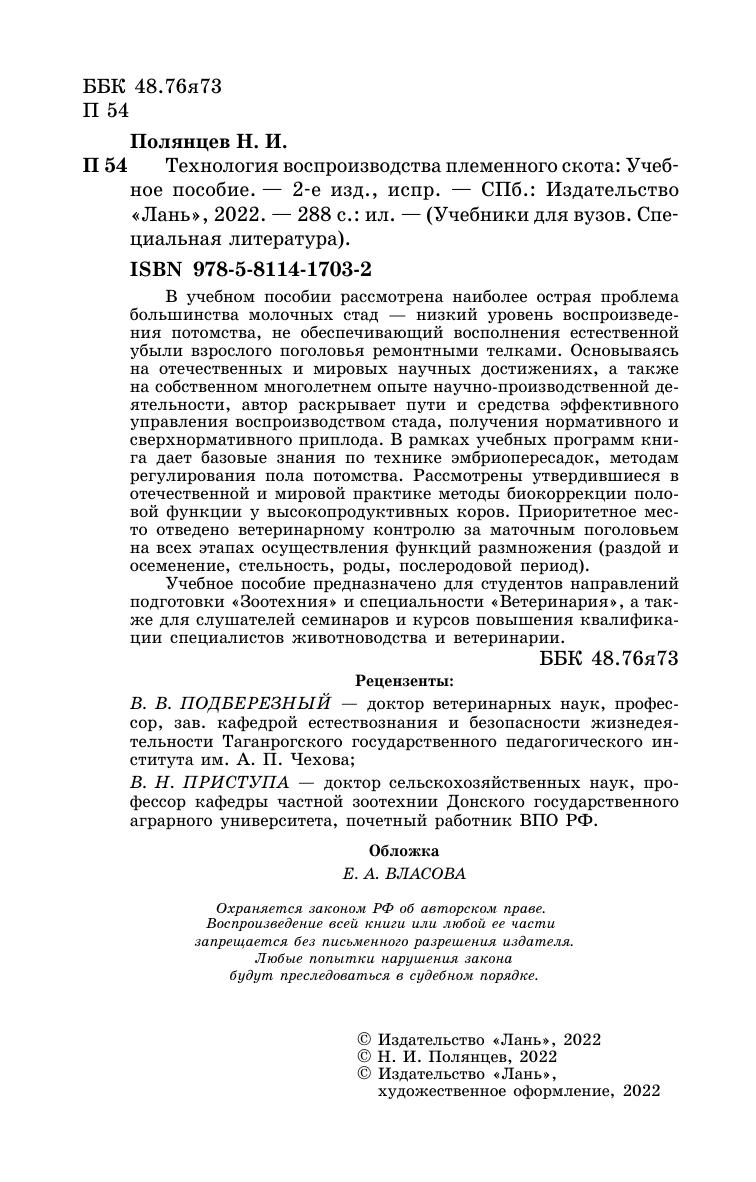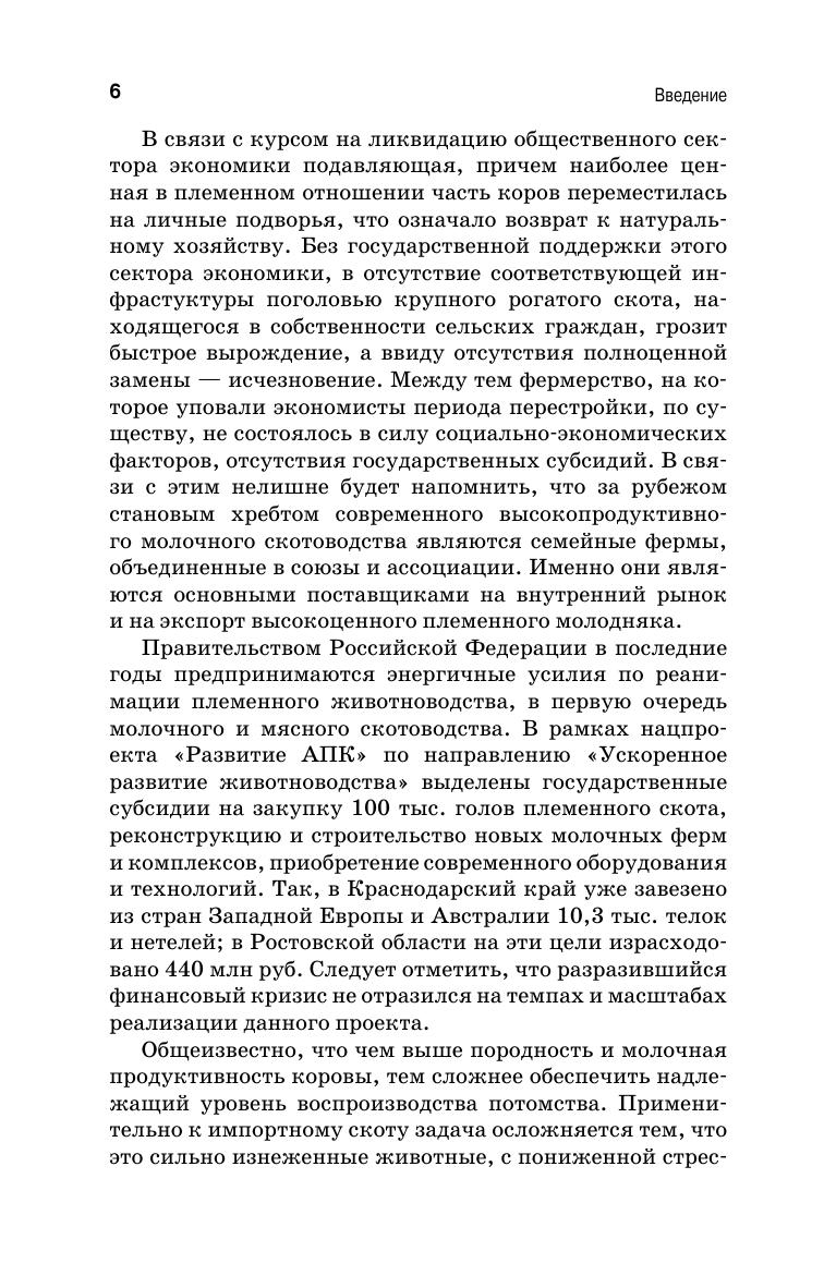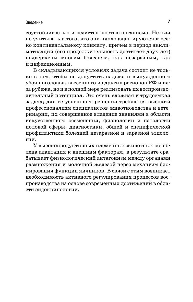 В учебном пособии рассмотрена наиболее острая проблема большинства молочных стад – низкий уровень воспроизведения потомства, не обеспечивающий восполнения естественной убыли взрослого поголовья ремонтными телками. Основываясь на отечественных и мировых научных достижениях, а также опираясь на собственный многолетний опыт научно-производственной деятельности, автор раскрывает пути и средства эффективного управления воспроизводством стада, получения нормативного и сверхнормативного приплода. Весьма компетентно изложены технология, организационная структура искусственного осеменения коров и телок в условиях крупных молочных ферм и комплексов, их специфика в мясном скотоводстве и при обслуживании малых семейных ферм и личных подворий граждан. В рамках учебных программ книга дает базовые знания по технике эмбриопересадок, методам регулирования пола потомства. Рассмотрены утвердившиеся в отечественной и мировой практике методы биокоррекции половой функции у высокопродуктивных коров. Приоритетное место отведено ветеринарному контролю за маточным поголовьем на всех этапах осуществления функций размножения (раздой и осеменение, стельность, роды, послеродовой период). Учебное пособие предназначено для студентов направлений подготовки «Ветеринария» и «Зоотехния», а также для слушателей семинаров и курсов повышения квалификации специалистов животноводства и ветеринарии.