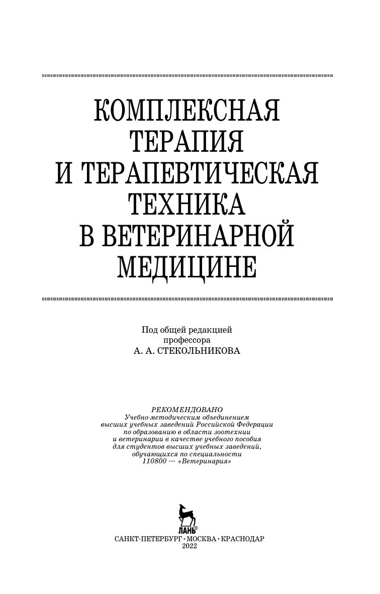 Комплексная терапия и терапевтическая техника в ветеринарной медицине