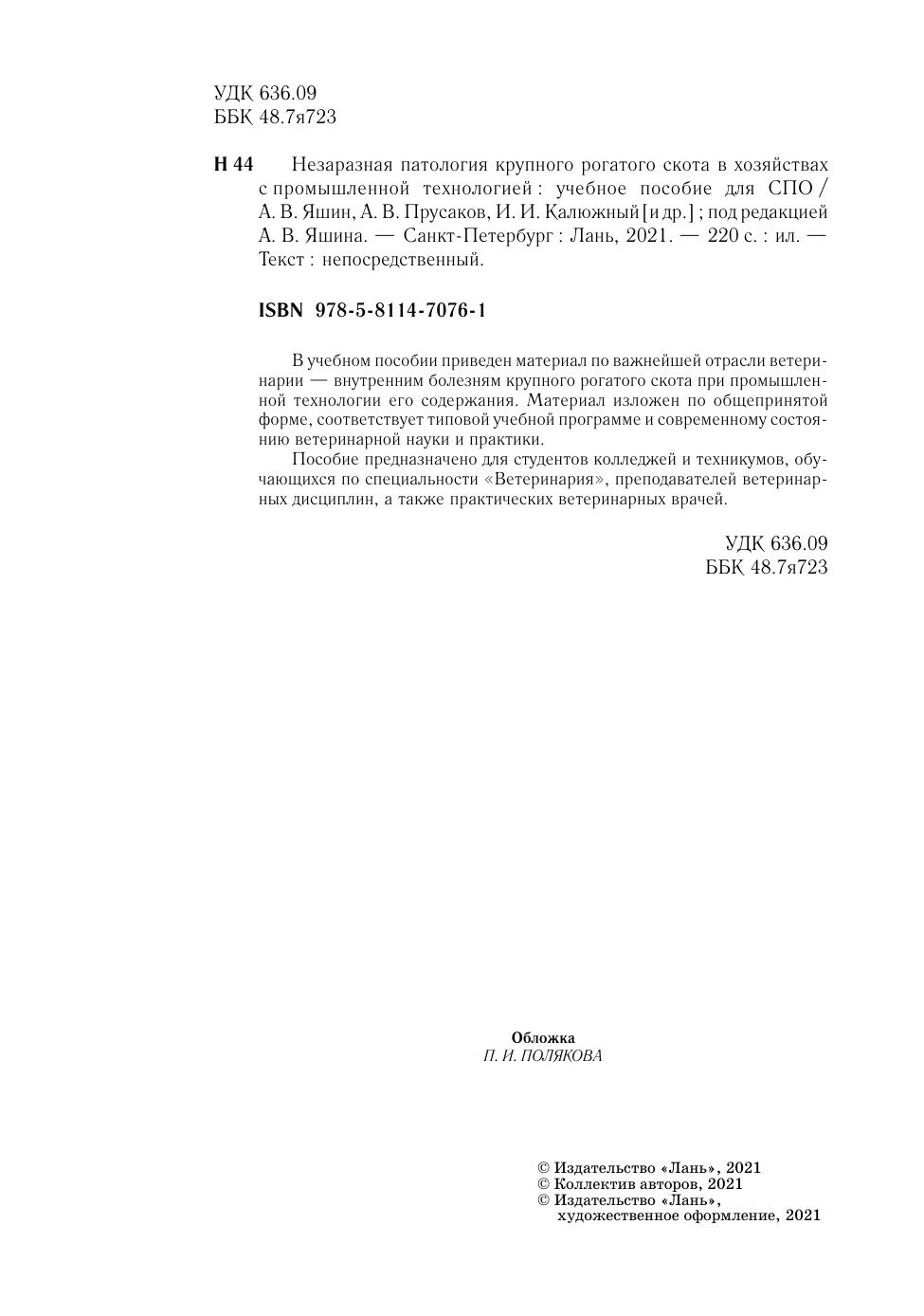 В учебном пособии приведен материал по важнейшей отрасли ветеринарии — внутренним болезням крупного рогатого скота при промышленной технологии его содержания. Материал изложен по общепринятой форме, соответствует типовой учебной программе и современному состоянию ветеринарной науки и практики.