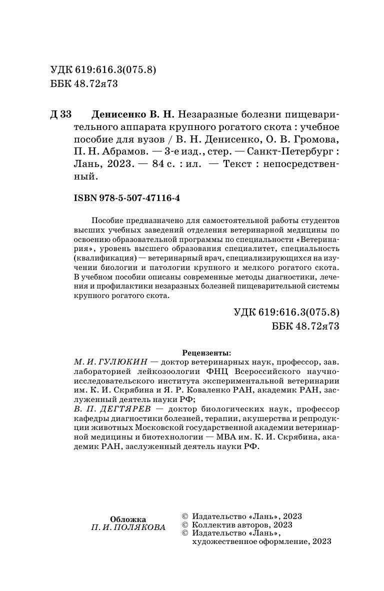 Пособие предназначено для самостоятельной работы студентов высших учебных заведений отделения ветеринарной медицины по освоению образовательной программы по специальности «Ветеринария», уровень высшего образования специалитет, специальность (квалификация) — ветеринарный врач, специализирующихся на изучении биологии и патологии крупного и мелкого рогатого скота. В учебном пособии описаны современные методы диагностики, лечения и профилактики незаразных болезней пищеварительной системы крупного рогатого скота.