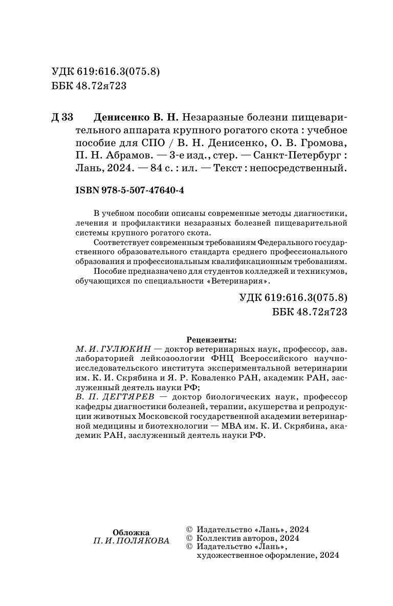 В учебном пособии описаны современные методы диагностики, лечения и профилактики незаразных болезней пищеварительной системы крупного рогатого скота. Соответствует современным требованиям Федерального государственного образовательного стандарта среднего профессионального образования и профессиональным квалификационным требованиям. Пособие предназначено для студентов колледжей и техникумов, обучающихся по специальности «Ветеринария».