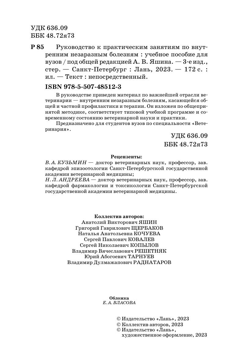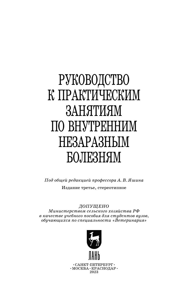 В руководстве приведен материал по важнейшей отрасли ветеринарии -внутренним незаразным болезням, касающейся общей и частной профилактики и терапии. Он изложен по общепринятой методике, соответствует типовой учебной программе и современному состоянию ветеринарной науки и практики. Предназначен для студентов вузов по специальности «Ветеринария».