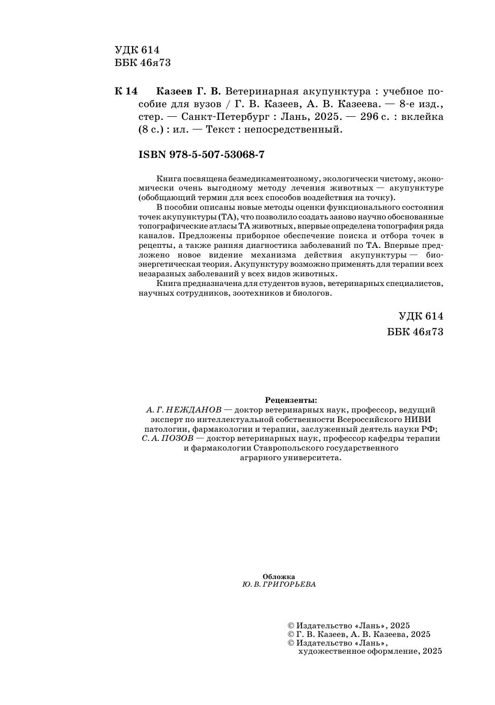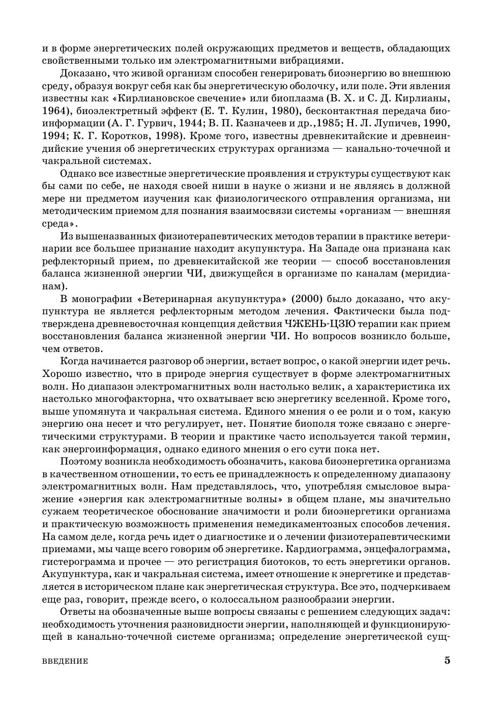 Книга посвящена безмедикаментозному, экологически чистому, экономически очень выгодному методу лечения животных — акупунктуре (обобщающий термин для всех способов воздействия на точку).В пособии описаны новые методы оценки функционального состояния точек акупунктуры (ТА), что позволило создать заново научно обоснованные топографические атласы ТА животных, впервые определена топография ряда каналов. Предложены приборное обеспечение поиска и отбора точек в рецепты, а также ранняя диагностика заболеваний по ТА. Впервые предложено новое видение механизма действия акупунктуры — биоэнергетическая теория. Акупунктуру возможно применять для терапии всех незаразных заболеваний у всех видов животных.Книга предназначена для ветеринарных специалистов, научных сотрудников, зоотехников и биологов.