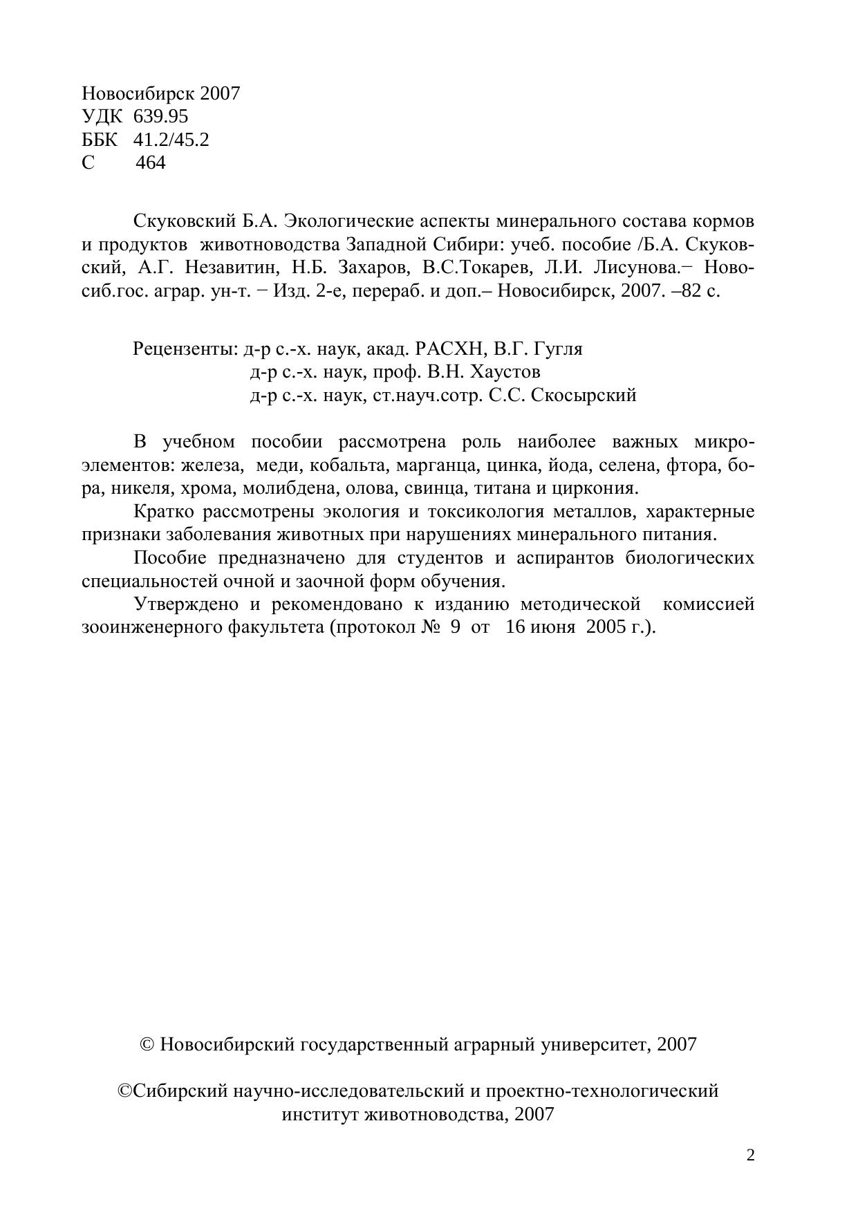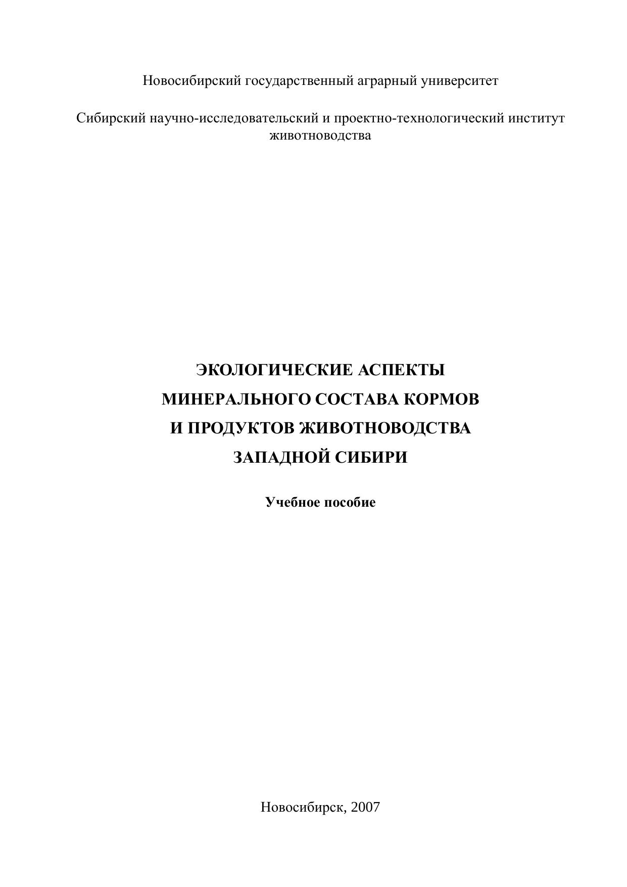 Экологические аспекты минерального состава кормов и продуктов животноводства Западной Сибири