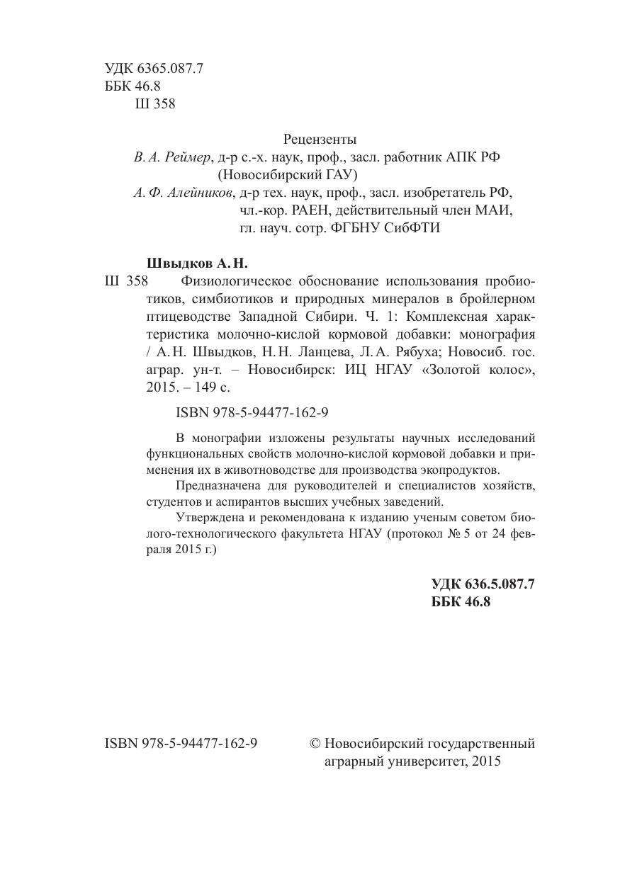 Физиологическое обоснование использования пробиотиков, симбиотиков и природных минералов в бройлерном птицеводстве Западной Сибири. Часть 1: Комплексная характеристика молочно-кислой кормовой добавки: монография