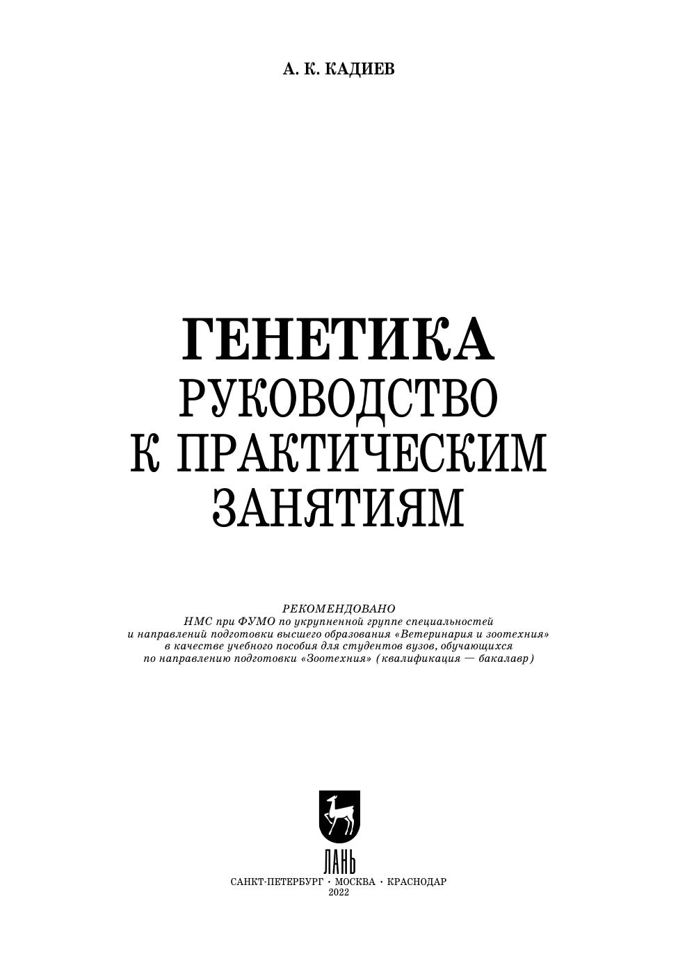 Предлагаемое руководство к практическим занятиям по генетике предназначено бакалаврам, магистрам, аспирантам, обучающимся по направлениям подготовки «Зоотехния», «Агрономия», «Водные биоресурсы и аквакультура», «Биология», специальности «Ветеринария». Пособие может быть полезным студентам медицинских вузов и всем преподавателям факультетов биологической направленности.