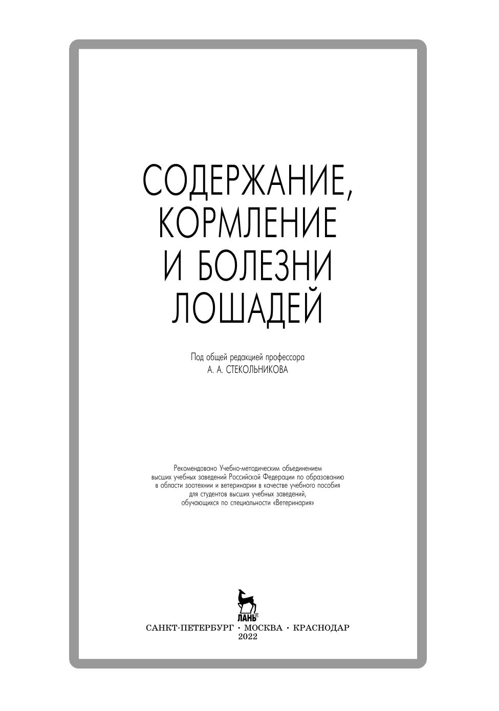 Рекомендовано Учебно-методическим объединением ВУЗов РФ по образованию в области зоотехнии и ветеринарии в качестве уч.пособия для студентов ВУЗов, обучающихся по специальности "Ветеринария". Предназначена для преподавателей, научных работников, студентов ветеринарных вузов, а также работников животноводства. В учебном пособии приводятся отдельные классические, но в основном новые материалы, касающиеся различных аспектов содержания, кормления и болезней важной отрасли животноводства лошадей. Книга имеет учебное, научное и производственное значение.