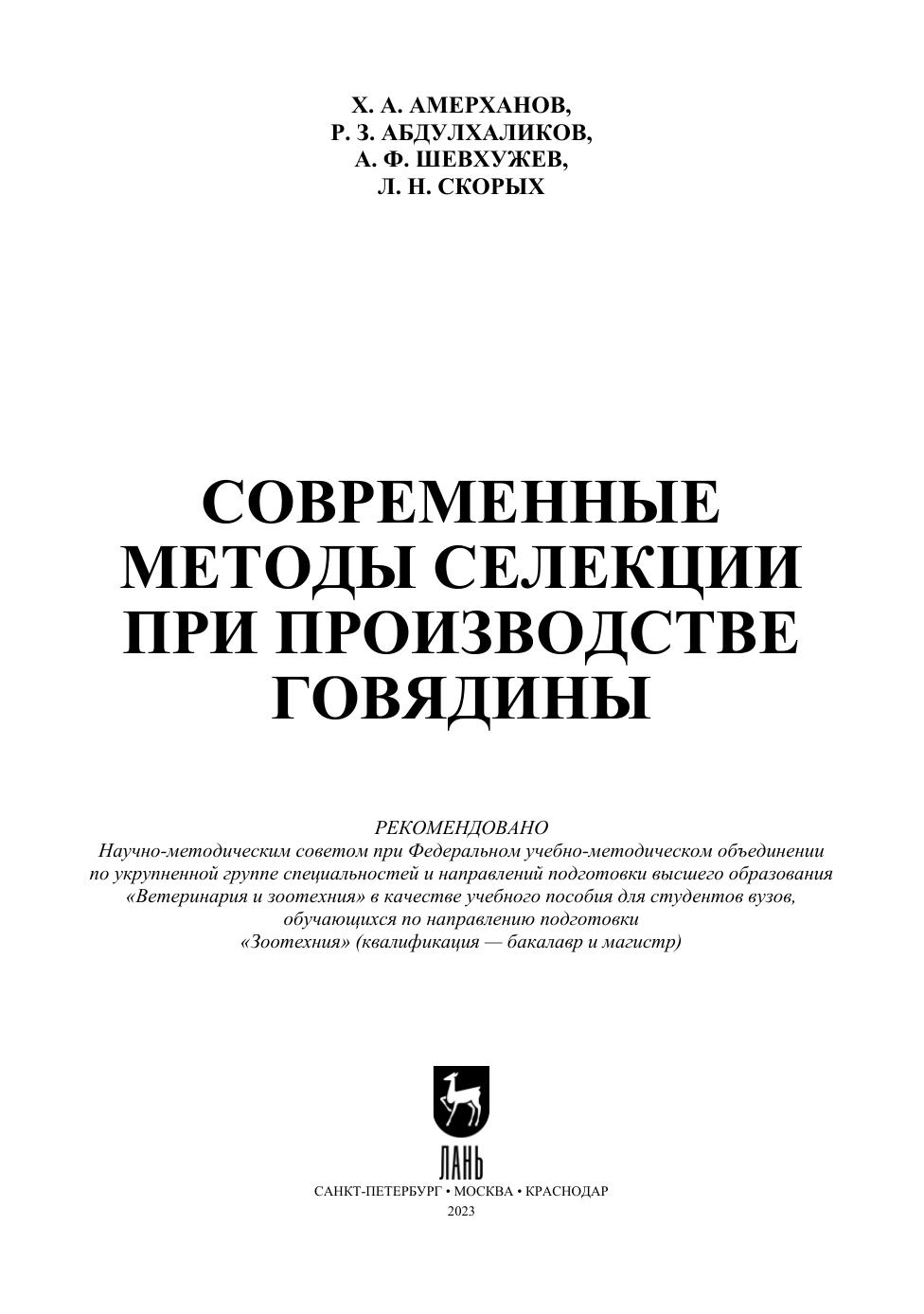 В учебное пособие включены сведения о современном состоянии и перспективах развития мясного скотоводства в России, а также рассматриваются современные подходы к селекции крупного рогатого скота с использованием молекулярно-генетических методов, адаптивные технологии выращивания и откорма молодняка крупного рогатого скота, эффективность промышленного скрещивания, организация и технология производства говядины в молочном и мясном скотоводстве и другие вопросы, связанные с производством говядины. Настоящее учебное пособие предназначено для подготовки студентов аграрных вузов по направлению подготовки «Зоотехния» (квалификация «магистр»), а также будет полезно для аспирантов, обучающихся по группе научных специальностей «Зоотехния и ветеринария», преподавателей, научных работников и специалистов АПК.