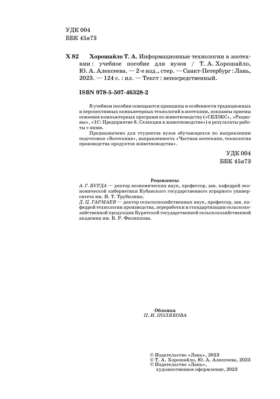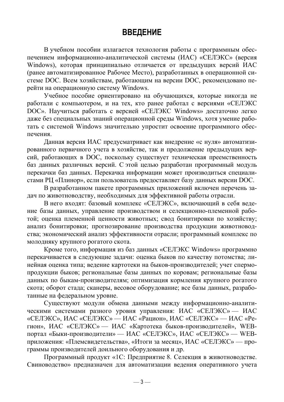 В учебном пособии освещаются принципы и особенности традиционных и перспективных компьютерных технологий в зоотехнии, показаны приемы освоения компьютерных программ по животноводству («СЕЛЭКС», «Рацио-ны», «1С: Предприятие 8. Селекция в животноводстве») и результаты рабо-ты с ними. Предназначено для обучающихся по направлению подготовки «Зоотех-ния», направленность «Частная зоотехния, технология производства про-дуктов животноводства».