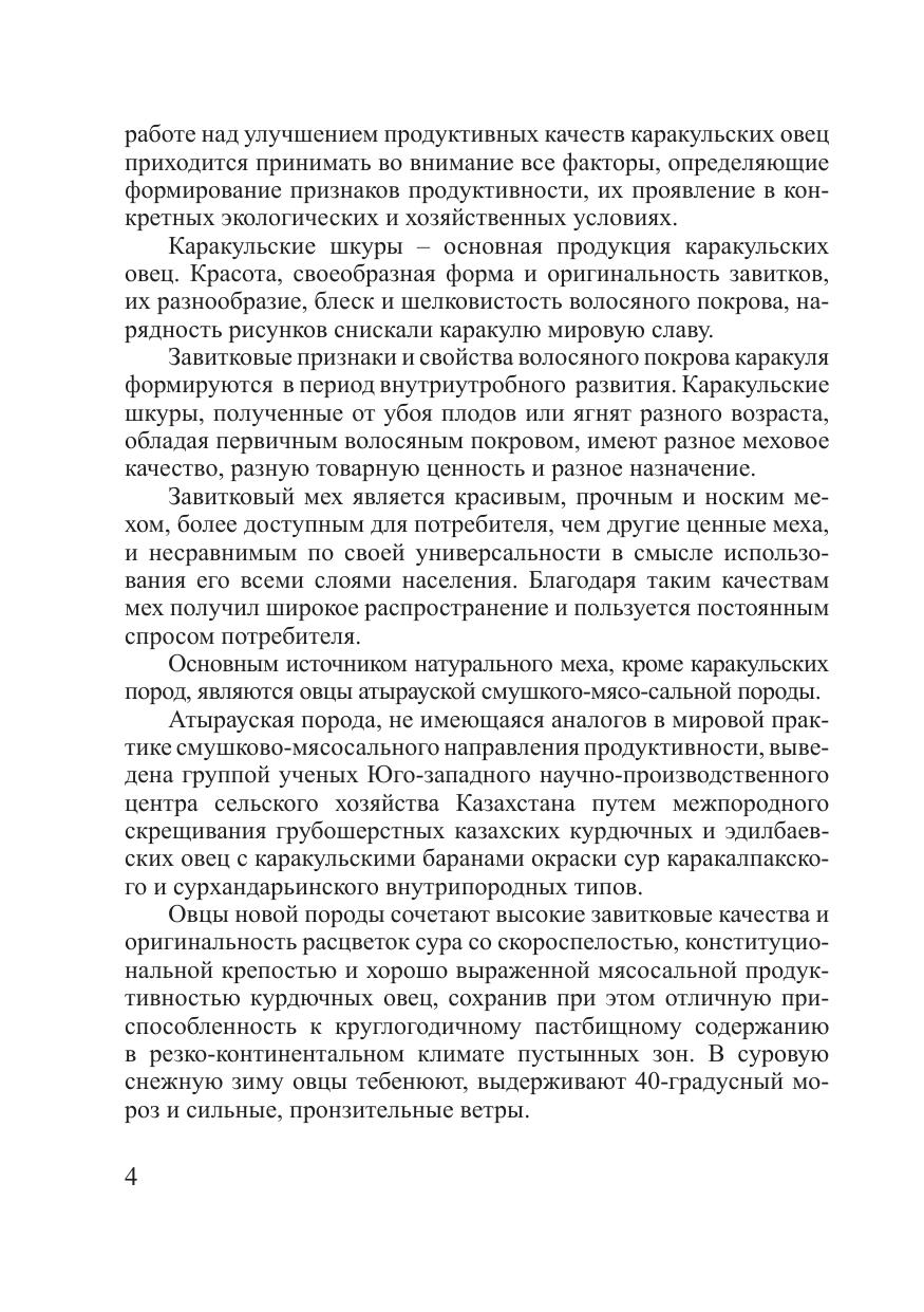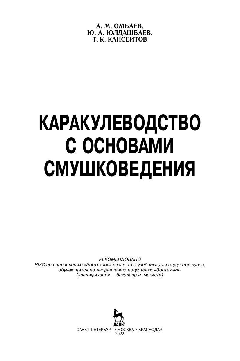 В издании изложены обобщенные данные специальной литературы и результаты многолетних исследований, проведенных в основных эколого-климатических зонах разведения каракульских овец. Описаны утробное развитие плода и генетика окрасок каракульских овец и их наследование. Приводятся данные о гистоморфологических признаках кожно-волосяного покрова новорожденных ягнят и их роли в качественном образовании градаций завиткового меха и в определении смушковых качеств каракульских шкурок. Дается характеристика причинной обусловленности смушковых признаков каракуля разных завитковых типов, окрасок и расцветок. Учебник предназначен для студентов, обучающихся по направлению «Зоотехния», а также будет полезен студентам смежных специальностей.