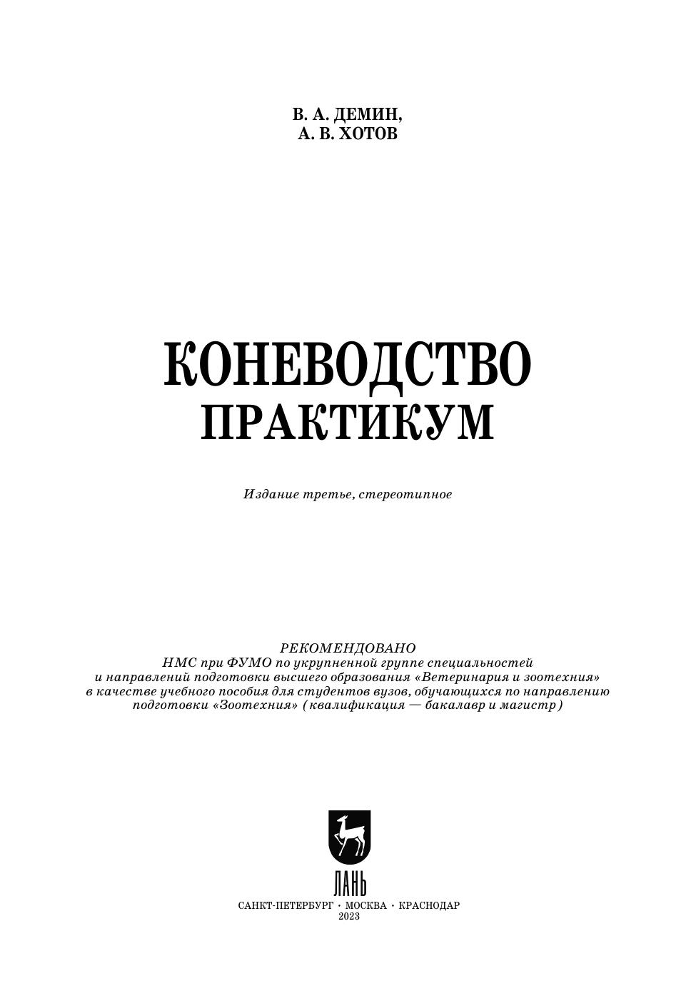В издании рассматриваются экстерьер, рабочие качества лошадей, молочное и мясное коневодство, воспроизводство, имеются разделы по выращиванию, кормлению, тренингу и испытаниям лошадей, конному спорту, племенной работе в коневодстве, исследованию клинических и гематологических показателей. Приводятся сведения о победителях Приза Президента РФ для ло-шадей английской чистокровной верховой породы, Большого Всесоюзного (Всероссийского) приза (Дерби) для лошадей трех лет английской чистокровной верховой породы и приза (Дерби) для лошадей четырех лет орловской рысистой породы. Каждая тема снабжена конкретными заданиями для самостоятельной работы, даны методические указания и рекомендованы соответствующие формы записей. Практикум предназначен для студентов вузов, обучающихся по на-правлению подготовки «Зоотехния» (бакалавриат, магистратура), и специалистов по коневодству.
