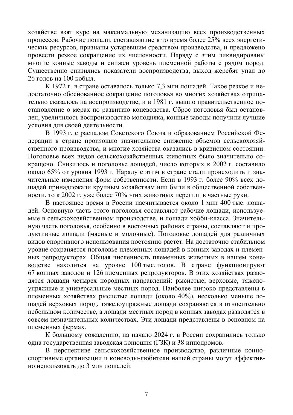 Учебник подготовлен в соответствии с программой дисциплины «Коневодство» и предназначен для обучающихся высших учебных заведений разного уровня подготовки по направлениям «Зоотехния», «Технология производства и переработки сельскохозяйственной продукции», «Продукты питания животного происхождения», специальности «Ветеринария», слушателей факультетов повышения квалификации и профессиональной переподготовки, его можно рекомендовать руководителям и специалистам по коневодству: зооинженерам, тренерам, наездникам, жокеям, а также фермерам и индивидуальным владельцам лошадей. В учебнике приводятся современные материалы по всем разделам программы, позволяющие приобрести глубокие и всесторонние знания, умения и навыки в области коневодства для дальнейшего эффективного использования лошадей в практической работе в различных сферах народного хозяйства, основанного на знании биологических особенностей лошади и ее хозяйственно-полезных качеств, применять прогрессивные технологии воспроизводства, выращивания, кормления, тренинга и испытаний лошадей. Представленные материалы помогут обучающимся и всем заинтересованным лицам иметь представление о состоянии и тенденциях развития коневодства в Российской Федерации, в странах СНГ, в мире. Знать: роль коневодства в народном хозяйстве и его место среди отраслей животноводства, важнейшие биологические особенности лошадей, особенности технологий ведения коневодства основных направлений — племенного, продуктивного, пользовательного, спортивного. Уметь эффективно применять знание биологических особенностей лошади и ее хозяйственно-полезных качеств при использовании в различных сферах деятельности человека (сельскохозяйственных работах, спорте, туристическом сервисе, производстве продуктов питания). Овладеть навыками обращения с лошадью, позволяющими проводить полную зоотехническую оценку с определением промеров, возраста, экстерьерных особенностей, качества движений, работоспособности, физиологического состояния. Освоить основные приемы бонитировки лошадей, оформления зоотехнической документации и племенного учета, планирования и отчетности, как в условиях мелких частных хозяйств, так и крупных предприятий, занимающихся разведением племенных, продуктивных, пользовательных и спортивных лошадей.