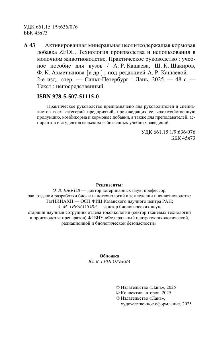 Активированная минеральная цеолитсодержащая кормовая добавка ZEOL. Технология производства и использования в молочном животноводстве. Практическое руководство
