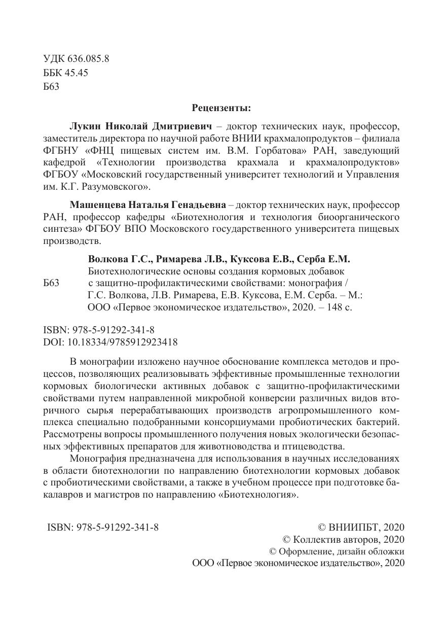 Монография предназначена для использования в научных исследованиях в области биотехнологии по направлению биотехнологии кормовых добавок с пробиотическими свойствами, а также в учебном процессе при подготовке бакалавров и магистров по направлению «Биотехнология».