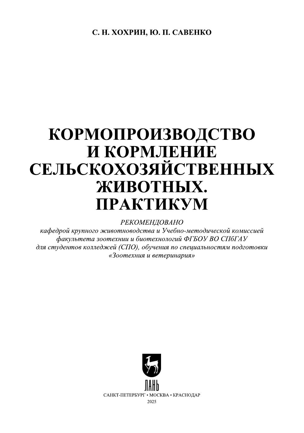 Кормопроизводство и кормление сельскохозяйственных животных. Практикум