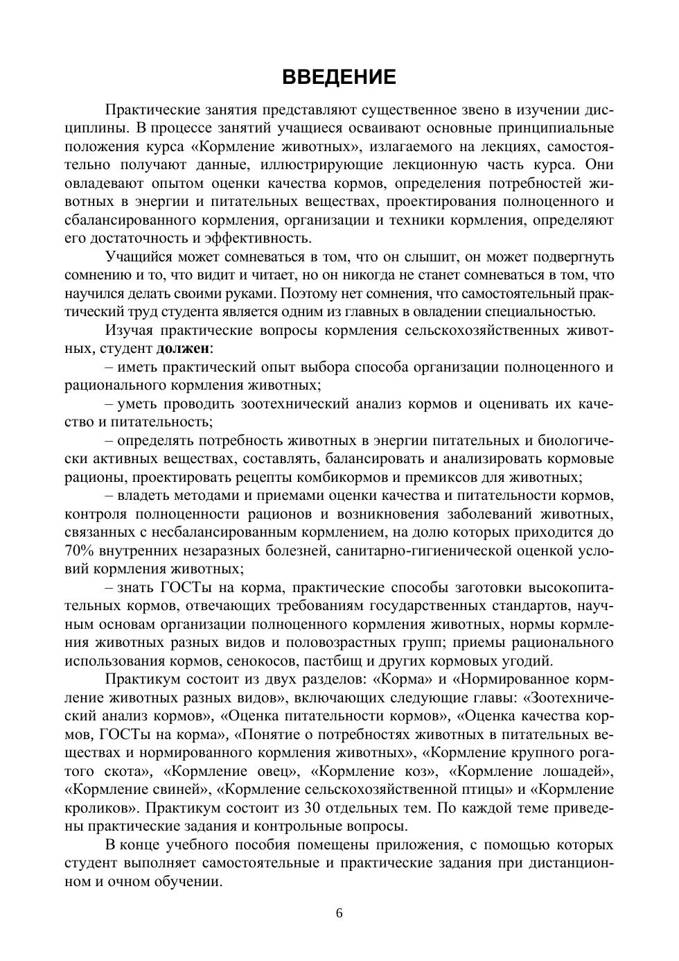 Учебное пособие содержит методические материалы и рекомендации для практических занятий по кормлению сельскохозяйственных животных. Приведены лабораторные методы зоотехнического анализа кормов по определению влаги, сухого и органического вещества, протеина, жира, клетчатки и золы. Даны практические приемы и расчеты по определению энергетической питательности кормов в обменной энергии. Описаны требования современных ГОСТов к качеству кормов. Пособие содержит практические рекомендации по составлению, балансированию и анализу кормовых рационов, рецептов комбикормов и премиксов для крупного рогатого скота, овец, коз, лошадей, свиней, птицы и кроликов. По каждой теме практических занятий и самостоятельной работе даны двухступенчатые задания и методические указания по их выполнению. Соответствует современным требованиям Федерального государственного образовательного стандарта среднего профессионального образования и профессиональным квалификационным требованиям. Пособие предназначено для студентов, получающих среднее профессиональное образование (СПО) по специальностям «Зоотехния» и «Ветеринария», для дистанционного и очного обучения. Пособие будет полезным для специалистов АПК, фермерских хозяйств и индивидуальных предпринимателей.