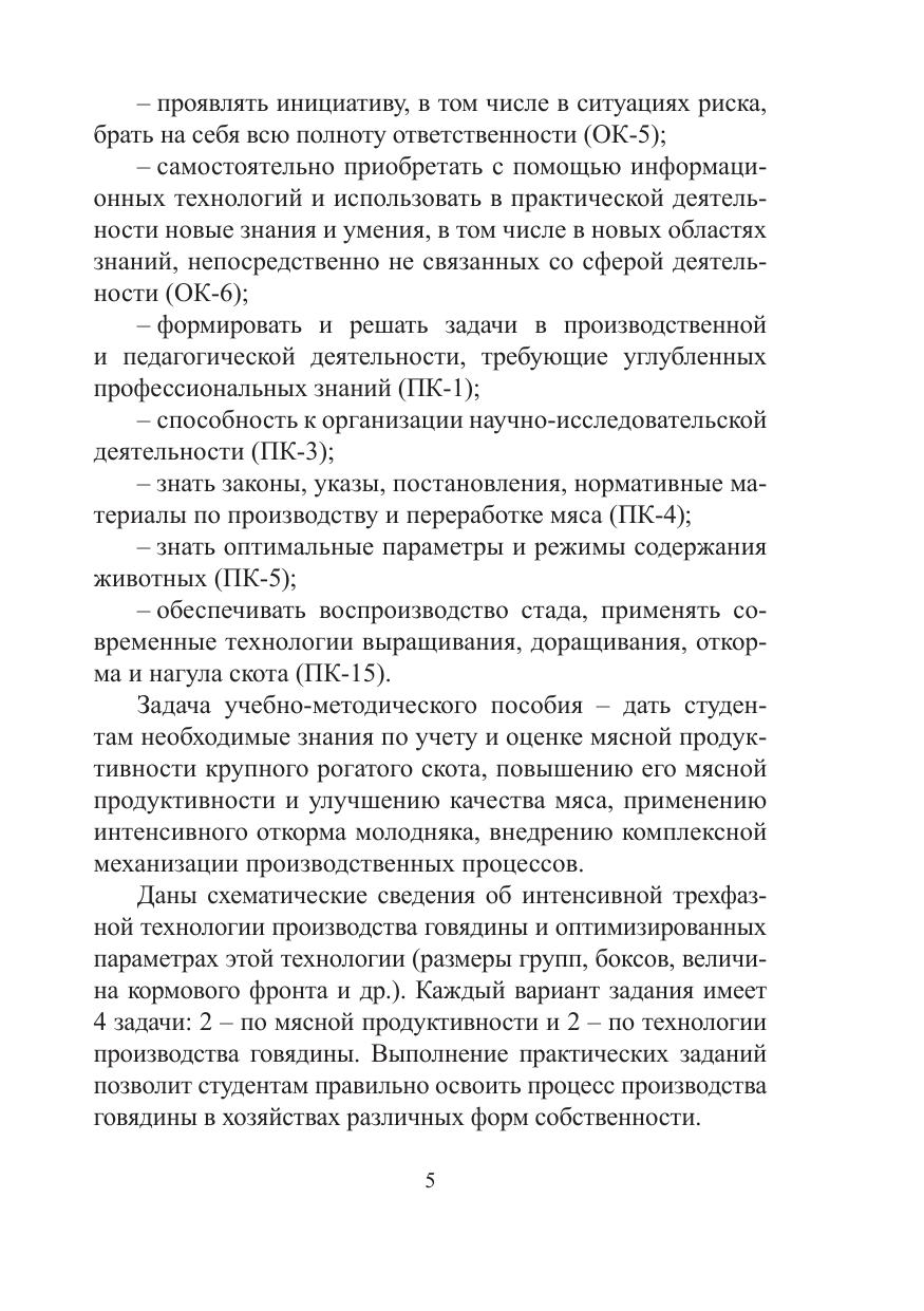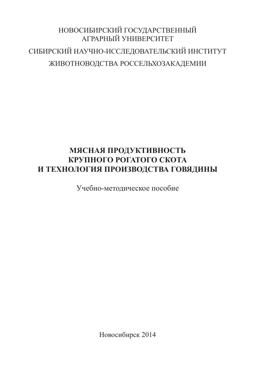 Рассмотрены методы прижизненной и послеубойной оценки мясной продуктивности основных пород крупного рогатого скота. Показаны особенности ресурсосберегающей технологии производства говядины и приведены основные технологические параметры. Учебно-методическое пособие предназначено для лабораторно-практических занятий и самостоятельной подготовки магистрантов, обучающихся по направлениям 111100.62 (36.03.02) – Зоотехния и 110900.62 (35.03.07) – Технология производства и переработки сельскохозяйственной продукции, а также для магистрантов первого года обучения по направлению подготовки 260200.68 и повышения квалификации практических работников.