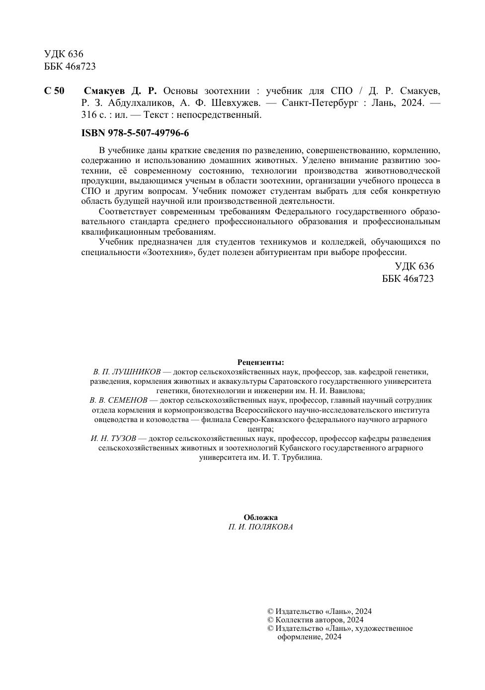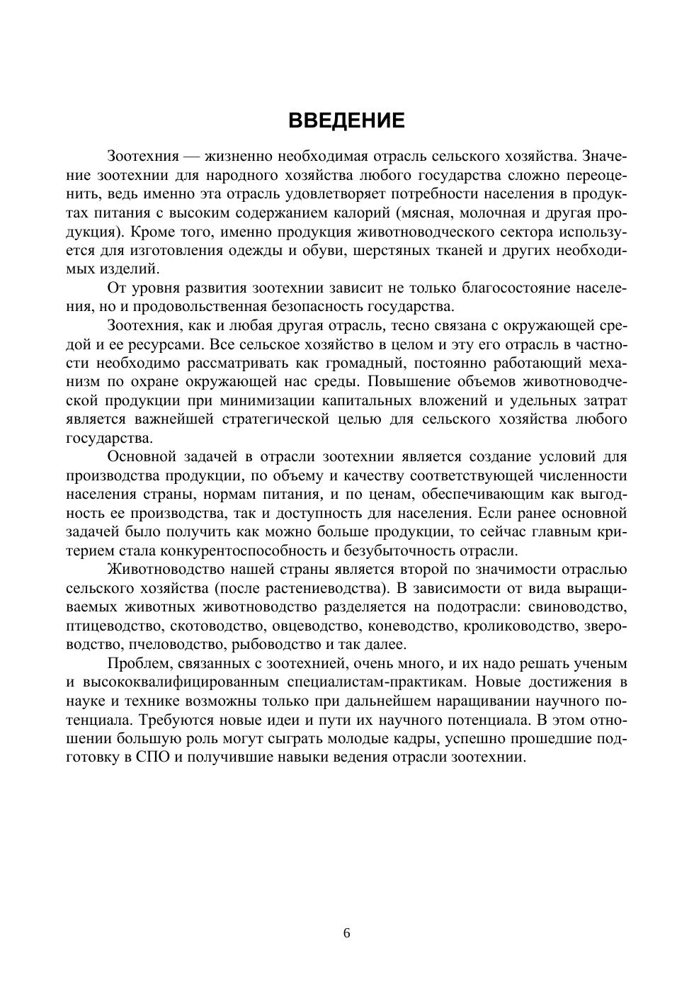 В учебнике даны краткие сведения по разведению, совершенствованию, кормлению, содержанию и использованию домашних животных. Уделено внимание развитию зоотехнии, её современному состоянию, технологии производства животноводческой продукции, выдающимся ученым в области зоотехнии, организации учебного процесса в СПО и другим вопросам. Учебник поможет студентам выбрать для себя конкретную область будущей научной или производственной деятельности. Соответствует современным требованиям Федерального государственного образовательного стандарта среднего профессионального образования и профессиональным квалификационным требованиям. Учебник предназначен для студентов техникумов и колледжей, обучающихся по специальности «Зоотехния», будет полезен абитуриентам при выборе профессии.