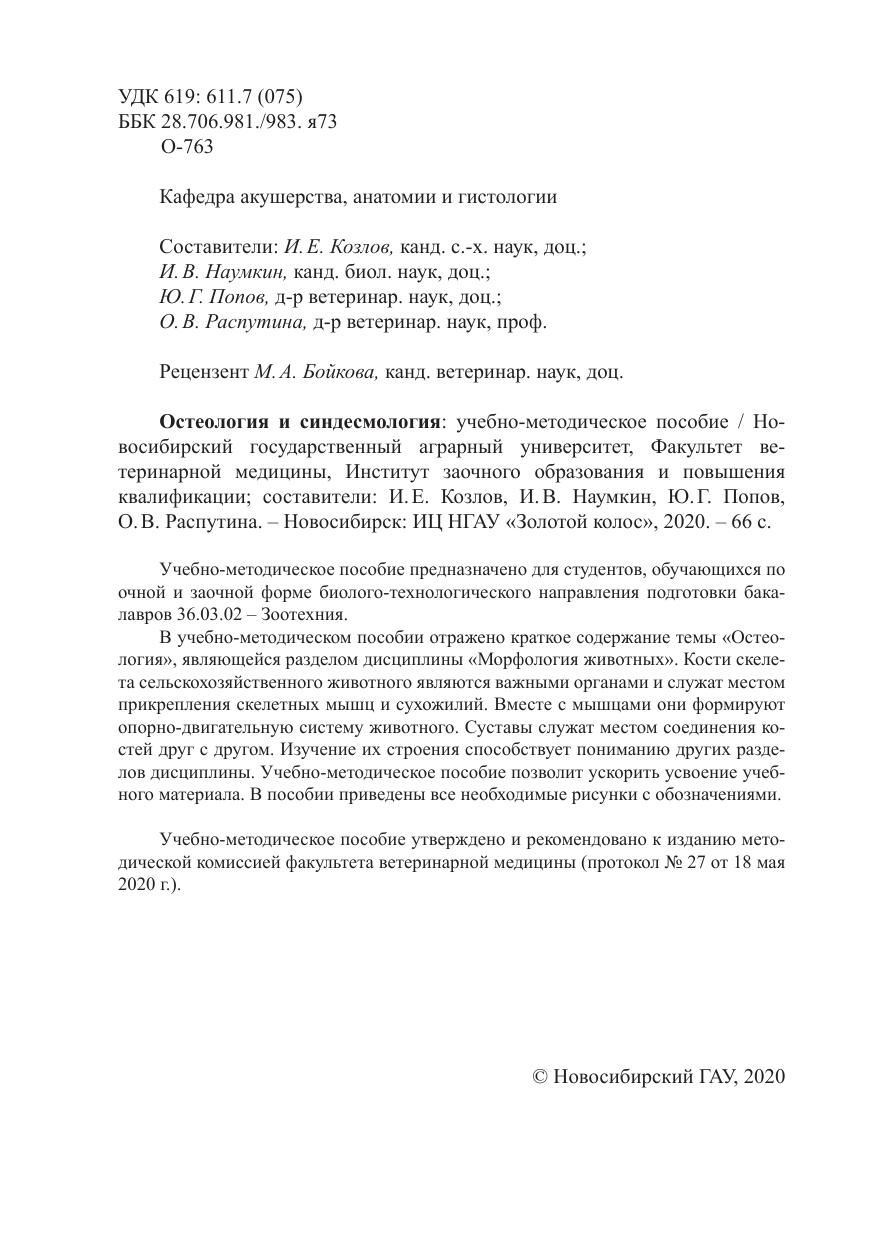 Учебно-методическое пособие предназначено для студентов, обучающихся по очной и заочной форме биолого-технологического направления подготовки бакалавров 36.03.02 – Зоотехния. В учебно-методическом пособии отражено краткое содержание темы «Остеология», являющейся разделом дисциплины «Морфология животных». Кости скелета сельскохозяйственного животного являются важными органами и служат местом прикрепления скелетных мышц и сухожилий. Вместе с мышцами они формируют опорно-двигательную систему животного. Суставы служат местом соединения костей друг с другом. Изучение их строения способствует пониманию других разделов дисциплины. Учебно-методическое пособие позволит ускорить усвоение учебного материала. В пособии приведены все необходимые рисунки с обозначениями.