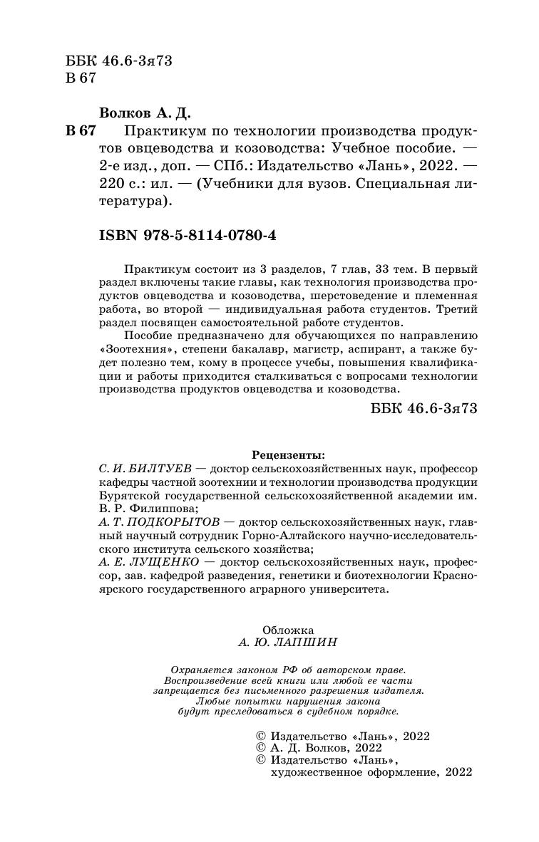 Практикум состоит из 3 разделов, 7 глав, 33 тем. В первый раздел включены такие главы, как технология производства продуктов овцеводства и козоводства, шерстоведение и племенная работа, во второй — индивидуальная работа студентов. Третий раздел посвящен самостоятельной работе студентов. Пособие предназначено для обучающихся по направлению «Зоотехния», степени бакалавр, магистр, аспирант, а также будет полезно тем, кому в процессе учебы, повышения квалификации и работы приходится сталкиваться с вопросами технологии производства продуктов овцеводства и козоводства.