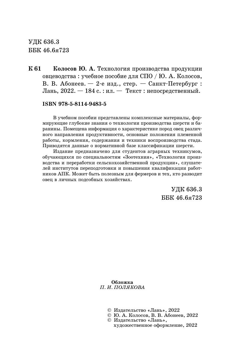 Издание предназначено для студентов аграрных техникумов, обучающихся по специальности «Зоотехния», «Технология производства и переработки сельскохозяйственной продукции», слушателей институтов переподготовки и повышения квалификации работников АПК. Может быть полезным для фермеров и тем, кто разводит овец в личных подсобных хозяйствах.