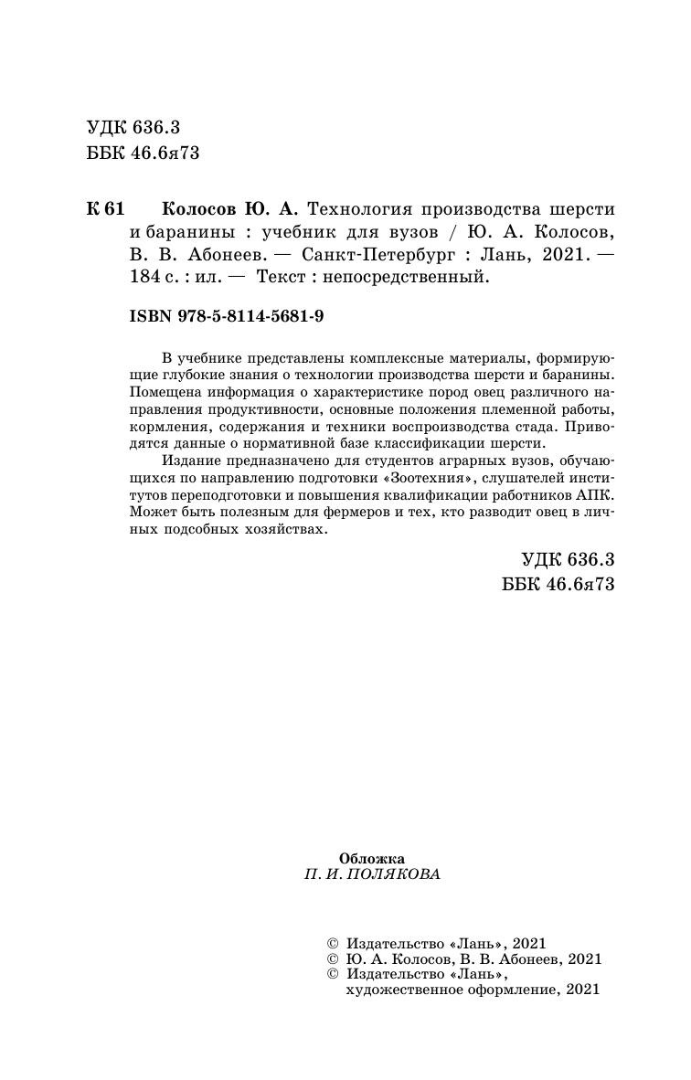 В учебнике представлены комплексные материалы, формирующие глубокие знания о технологии производства шерсти и баранины. Помещена информация о характеристике пород овец различного направления продуктивности, основные положения племенной работы, кормления, содержания и техники воспроизводства стада. Приводятся данные о нормативной базе классификации шерсти.