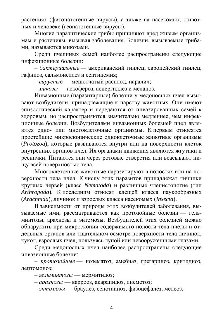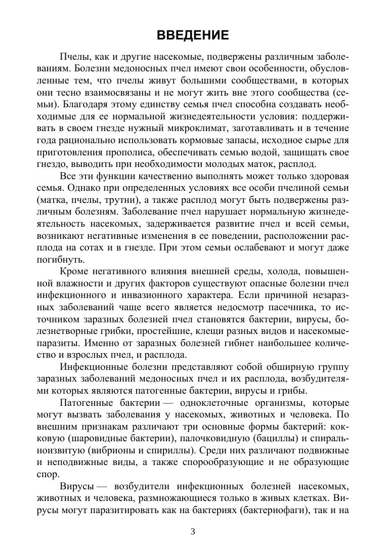 В учебном пособии подробно описаны наиболее распространенные в Российской Федерации и в зарубежных странах болезни и вредители пчел. Сведения пособия изложены по общепринятой схеме, что позволяет специалистам более оперативно использовать их при диагностике, лечении и профилактике конкретного заболевания пчел. Для лучшего усвоения материала пособие иллюстрировано рисунками, отражающими характерные морфологические особенности возбудителей, и клинических признаков болезней.