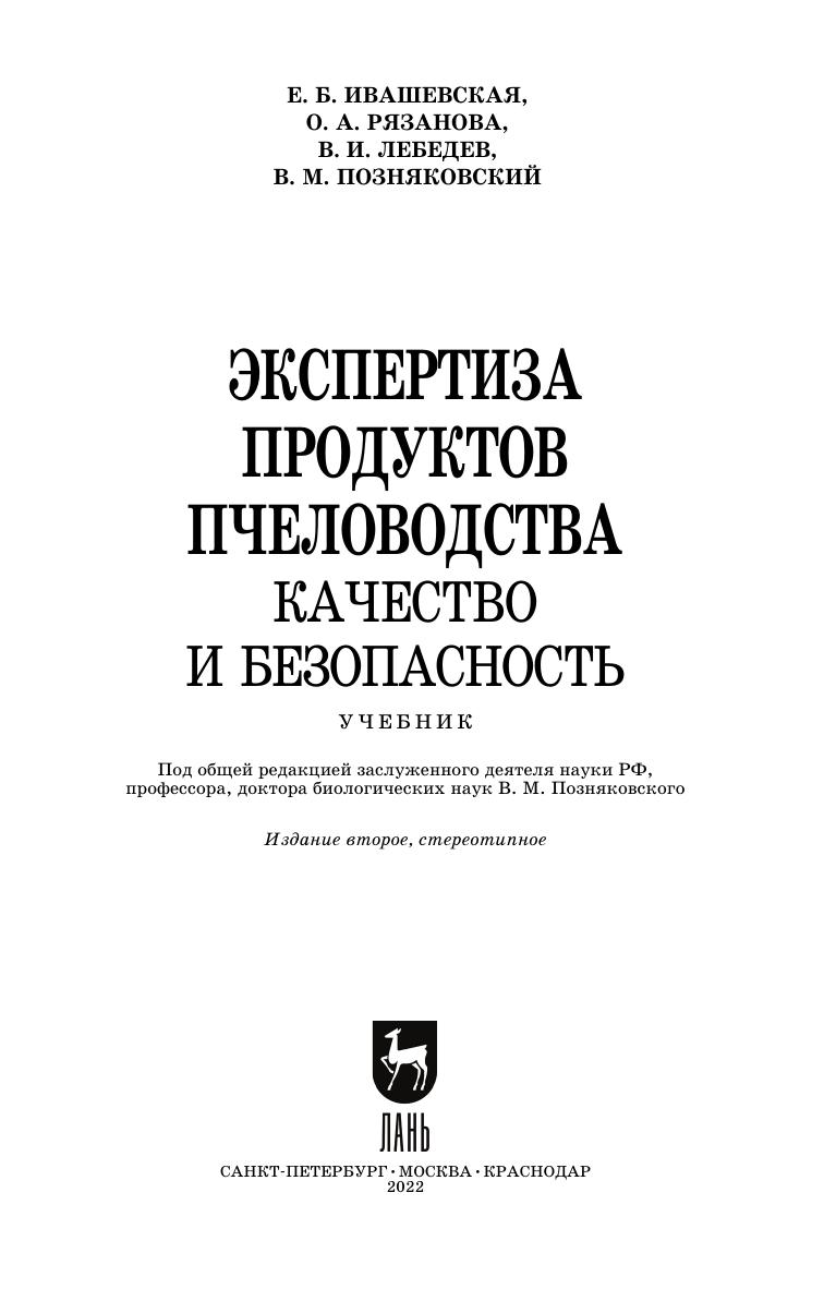 Учебник содержит наиболее полный учебно-справочный материал по экспертизе продуктов пчеловодства: меда, воска, пыльцы, перги, прополиса, пчелиного яда, маточного молочка и гомогената трутневого расплода. Рассмотрены характеристики этих продуктов, требования к качеству, упаковке, маркировке, влияние технологических процессов на качество, причины возникновения и способы предупреждения дефектов, условия хранения. Соответствует современным требованиям Федерального государственного образовательного стандарта среднего профессионального образования и профессиональным квалификационным требованиям. Учебник рекомендован для учащихся учебных заведений системы СПО, изучающих дисциплины, связанные с вопросами качества и безопасности продуктов животного происхождения, в частности, продуктов пчеловодства.