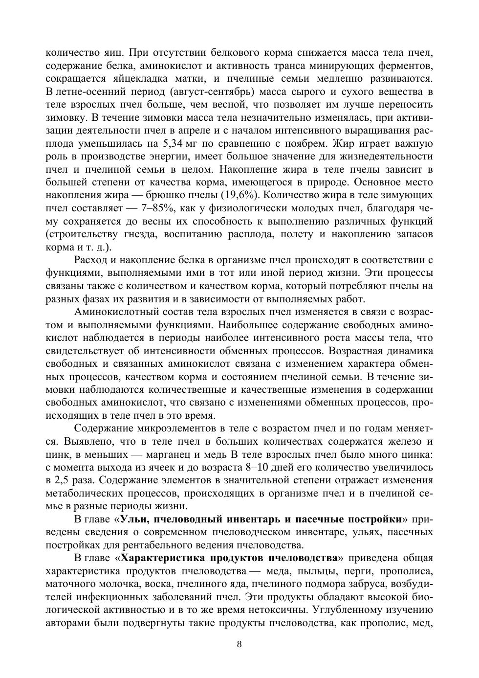 Книга предназначена для студентов техникумов и колледжей, обучаю-щихся по специальностям «Технология производства и переработки сельско-хозяйственной продукции», «Зоотехния», «Ветеринария», «Пчеловодство», и других специалистов сельского хозяйства, проявляющих интерес к пчело-водству и апитерапии.