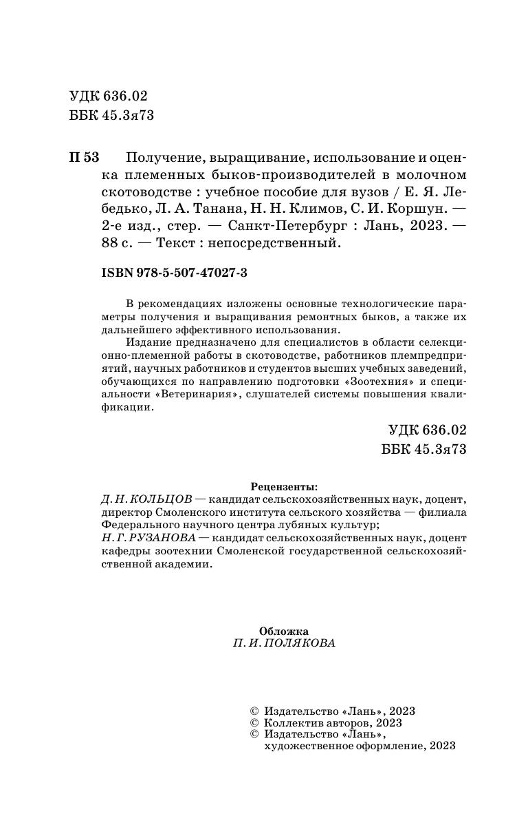 В рекомендациях изложены основные технологические параметры получения и выращивания ремонтных быков, а также их дальнейшего эффективного использования. Издание предназначено для специалистов в области селекционно-племенной работы в скотоводстве, работников племпредприятий, научных работников и студентов высших учебных заведений, обучающихся по направлению подготовки «Зоотехния» и специальности «Ветеринария», слушателей системы повышения квалификации.
