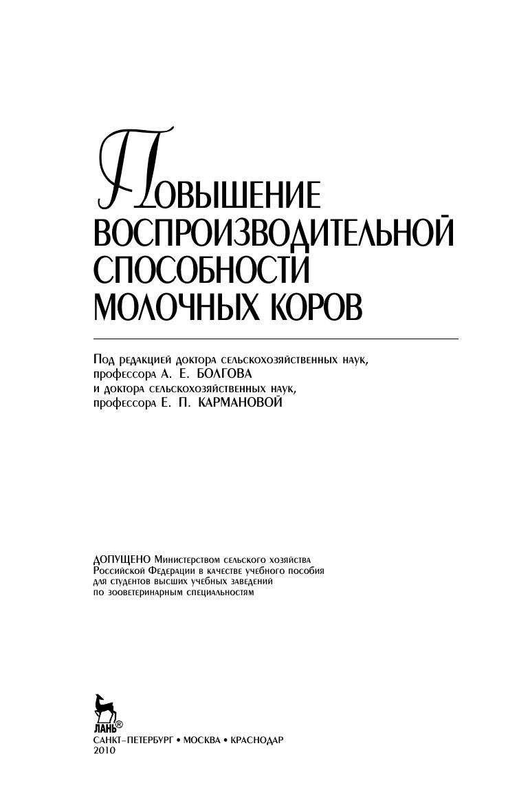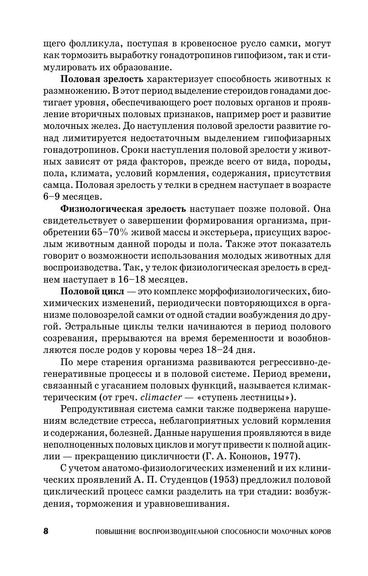 В учебном пособии рассматриваются современные данные науки и практики по проблемам воспроизводства крупного рогатого скота. Изложены биологические основы воспроизведения, дана подробная характеристика основных показателей плодовитости коров, представлены современные требования к воспроизводству стада в молочном скотоводстве. Центральное место уделено анализу паратипических и наследственных факторов повышения воспроизводительной способности, обоснованию оптимальных параметров плодовитости молочных коров. Предназначено для студентов вузов по зооветеринарным специальностям.