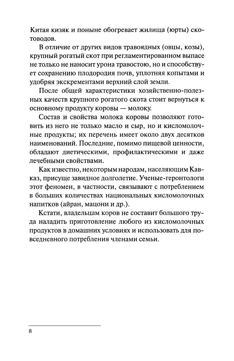 Начальная часть книги содержит сведения о биологических особенностях крупного рогатого скота, его роли в жизни и рациональном питании человека.