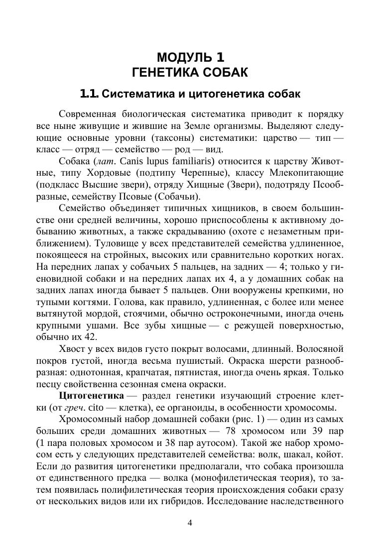 Учебное пособие предназначено для самостоятельной работы обучающихся по направлению «Зоотехния», профиль «Непродуктивное животноводство» («Кинология»), изучающих дисциплину «Генетика и селекция собак». Данная дисциплина является синтетической и включает в себя знания различных дисциплин, прежде всего, «Разведение животных» и «Генетика». Учебное пособие разделено на два раздела: «Генетика собак» и «Селекция собак». Все разделы составлены с учетом последних достижений в генетике, клеточной и генной инженерии, касающихся собак. Данное пособие может быть также использовано для занятий по другим дисциплинам направления, таким как «Разведение и содержание собак», «Племенное дело в собаководстве», « Стандарты пород собак», «Экспертная оценка собак» и др.