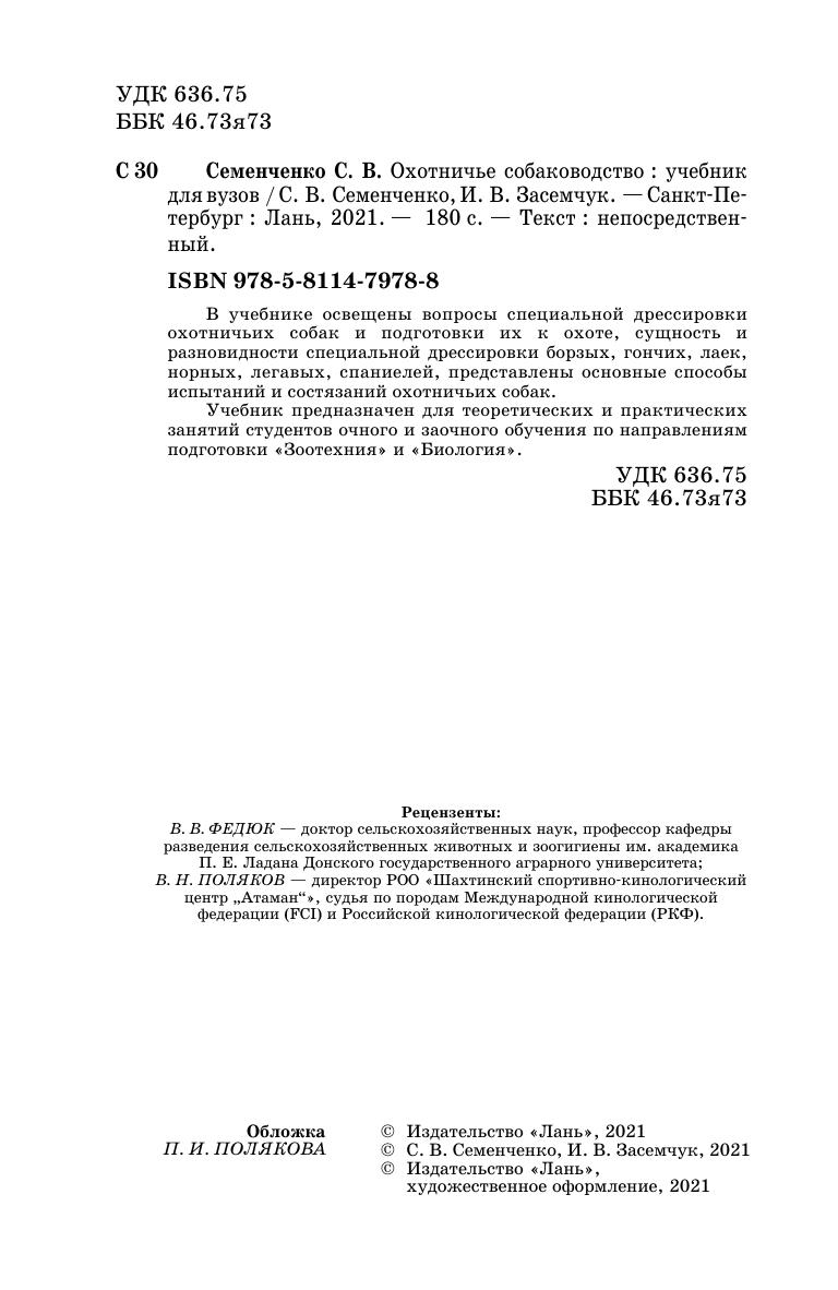В учебнике освещены вопросы специальной дрессировки охотничьих собак и подготовки их к охоте, сущность и разновидности специальной дрессировки, борзых, гончих, лаек, норных, легавых, спаниелей, представлены основные способы испытаний и состязаний охотничьих собак.