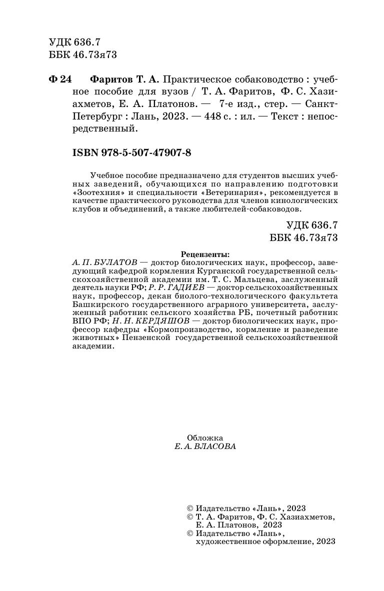 Учебное пособие предназначено для студентов высших учебных заведений, обучающихся по направлению подготовки «Зоотехния» и специальности «Ветеринария», рекомендуется в качестве практического руководства для членов кинологических клубов и объединений, а также любителей-собаководов.